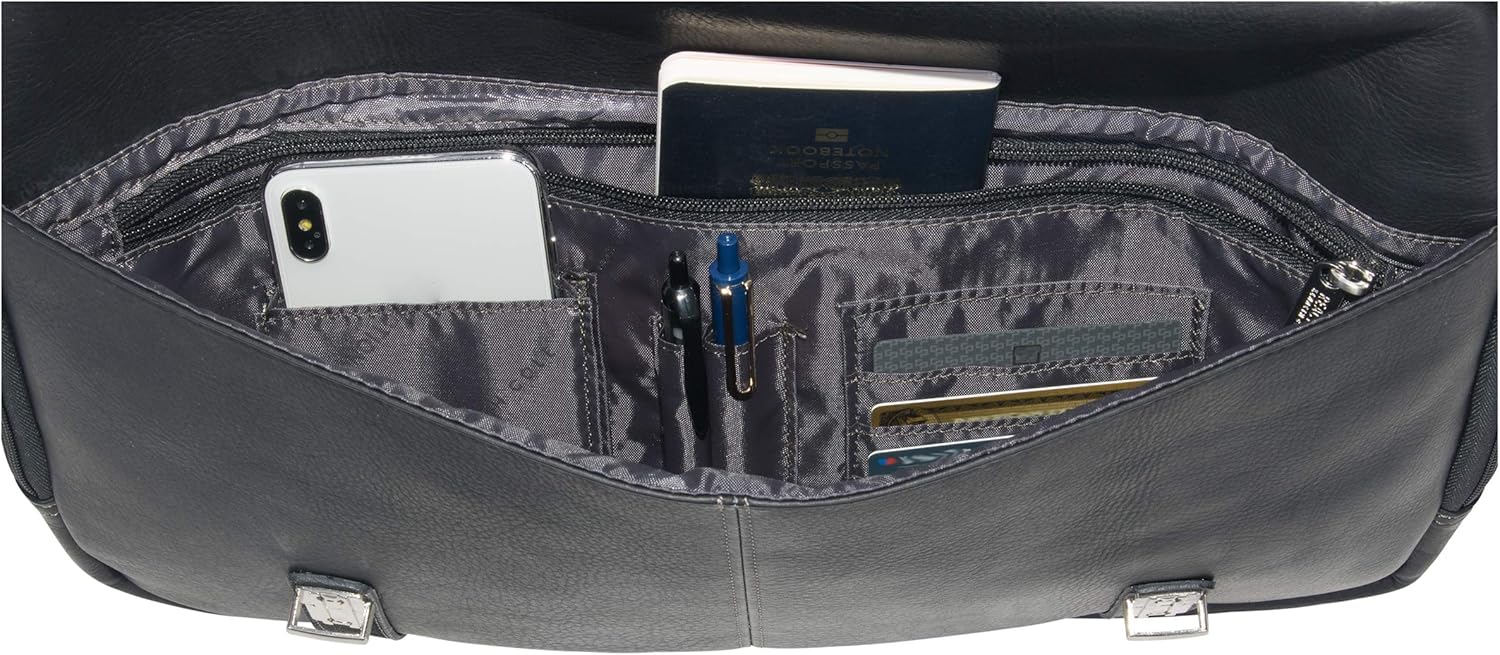 - ★ Modern Mobility, Thoughtful Design: (i) This Kenneth Cole Reaction Colombian leather 15.6-inch laptop portfolio features multiple accessory pockets and multiple compartments to keep all your travel essentials organized. (ii) Features a buckle looking closure with convenient secure tuck locks. (iii) Features a removable, adjustable shoulder strap with a ultra-padded, non-slip shoulder pad that extends 52 inches.