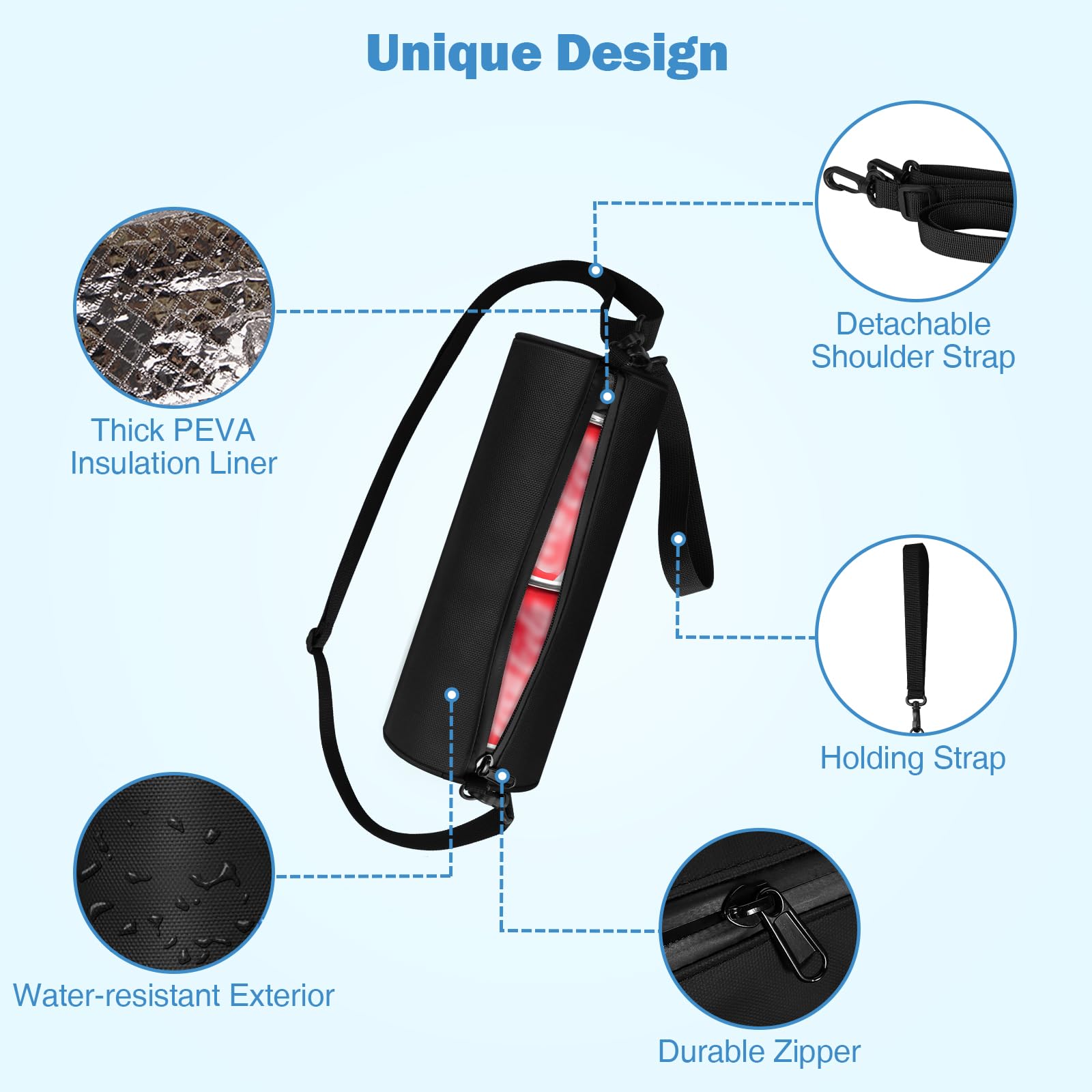 - 【Easy to Carry】Comfortable handle for easy portability. The shoulder strap on the golf cooler sleeve is adjustable, you can hang it on your shoulder. The bag fits easily into most backpack and golf bag side compartments and hangs easily from your backpack. It can be loaded with drinks, beer, umbrellas, mugs, etc., making it more convenient to carry.