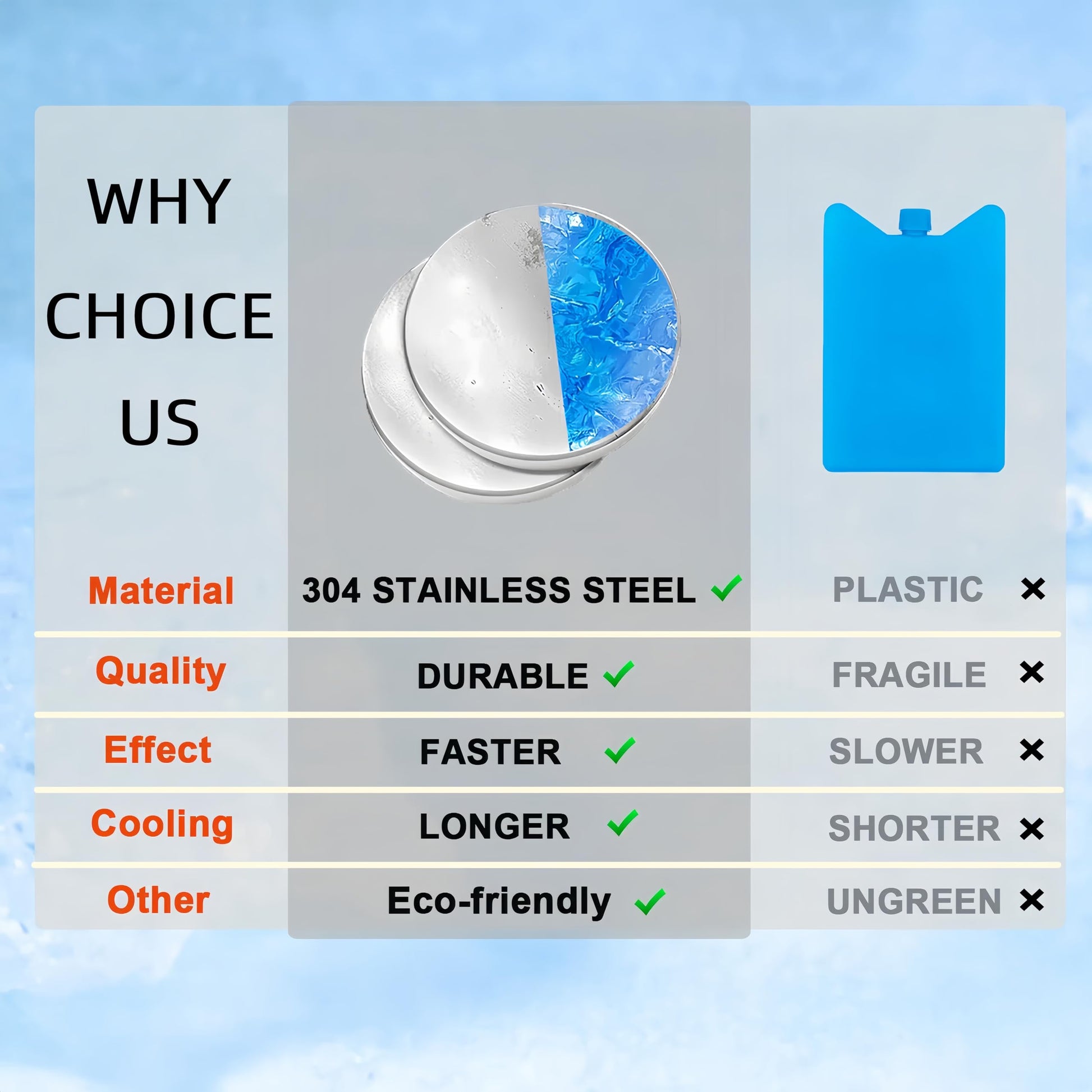 - LONGER FREEZING, BETTER COOLING: Stainless steel ice packs have better heat conductivity than plastic, keeping your food fresher for longer. Plus, it contains more non-toxic cooling liquid, ensuring a longer-lasting cooling effect