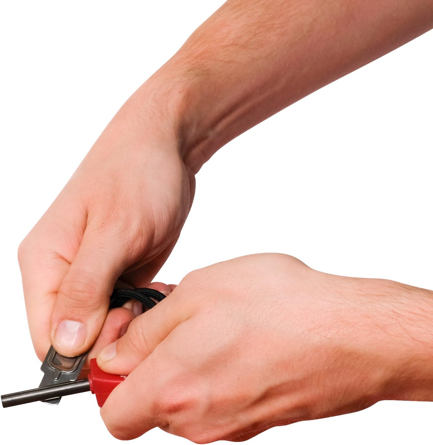 "Kershaw’s Firestarter is a vital tool for anyone outdoors enthusiast. The compact Fire Starter easily fits in any pocket and is essential in any dry box, emergency kit and bug-out bag. The Firestarter’s magnesium firesteel shaft works for up to 3,000 strikes and can create a spark in rain, snow and other harsh natural conditions. The Firestarter’s bright red molded plastic handle is easy to find, easy to hold and easy to use with the included chrome-plated striker. Simply hold the Firestarter’s shaft close to a small pile of dry, flammable materials and quickly draw the striker down the shaft at a right angle to produce sparks. Once material ignites and establishes a flame, gradually add larger materials to the fire. The Firestarter can be used for camp stoves, gas barbecues and, in emergency situations, the brilliant spark can even be used as a distress signal. Kershaw’s Firestarter stores easily with its nylon lanyard, doesn’t require a dry box and outperforms waterproof matches."