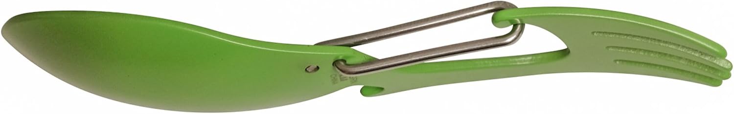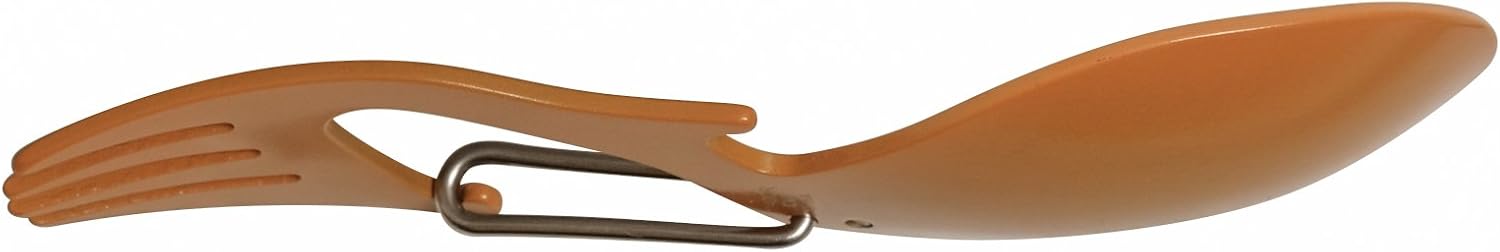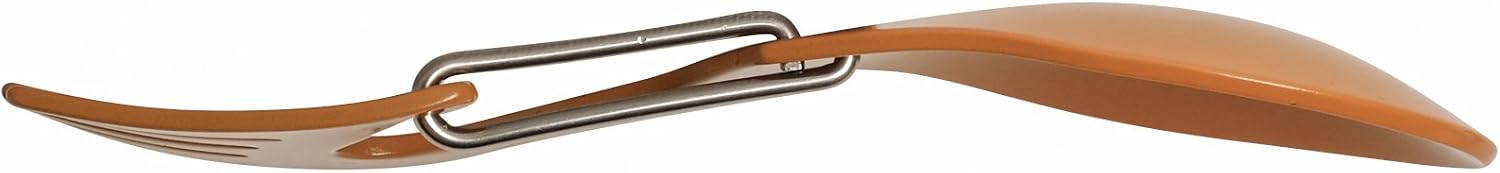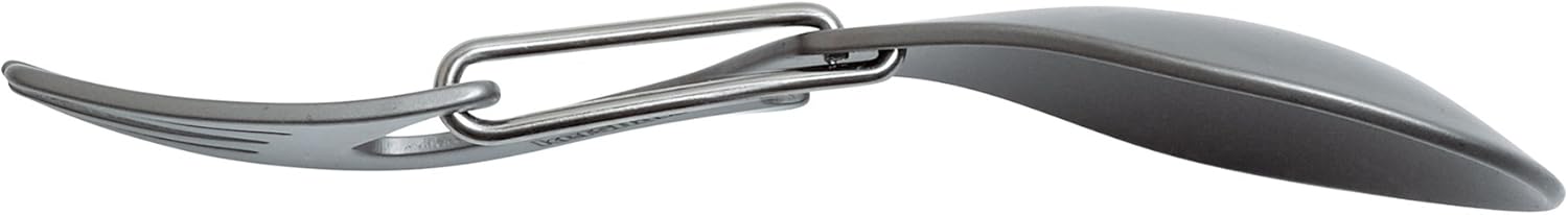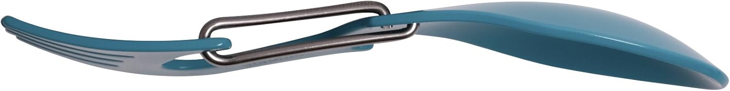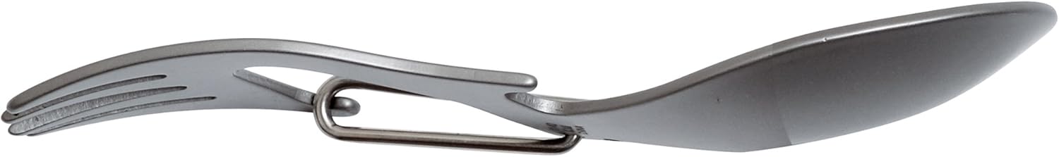 - Lightweight stainless steel spoon and fork multi-tool with non-reflective bead-blasted finish is resistant to corrosion.