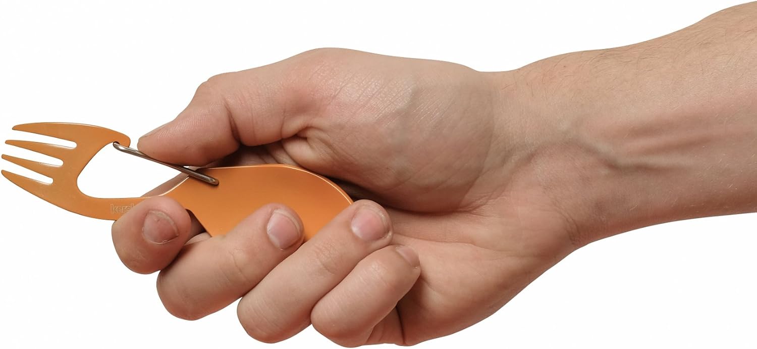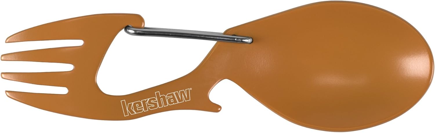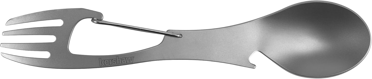 Kershaw Ration Multi Tool Spork, Stainless Steel Spoon, Fork, Carabiner and Bottle Opener, Regular and XL Sizes