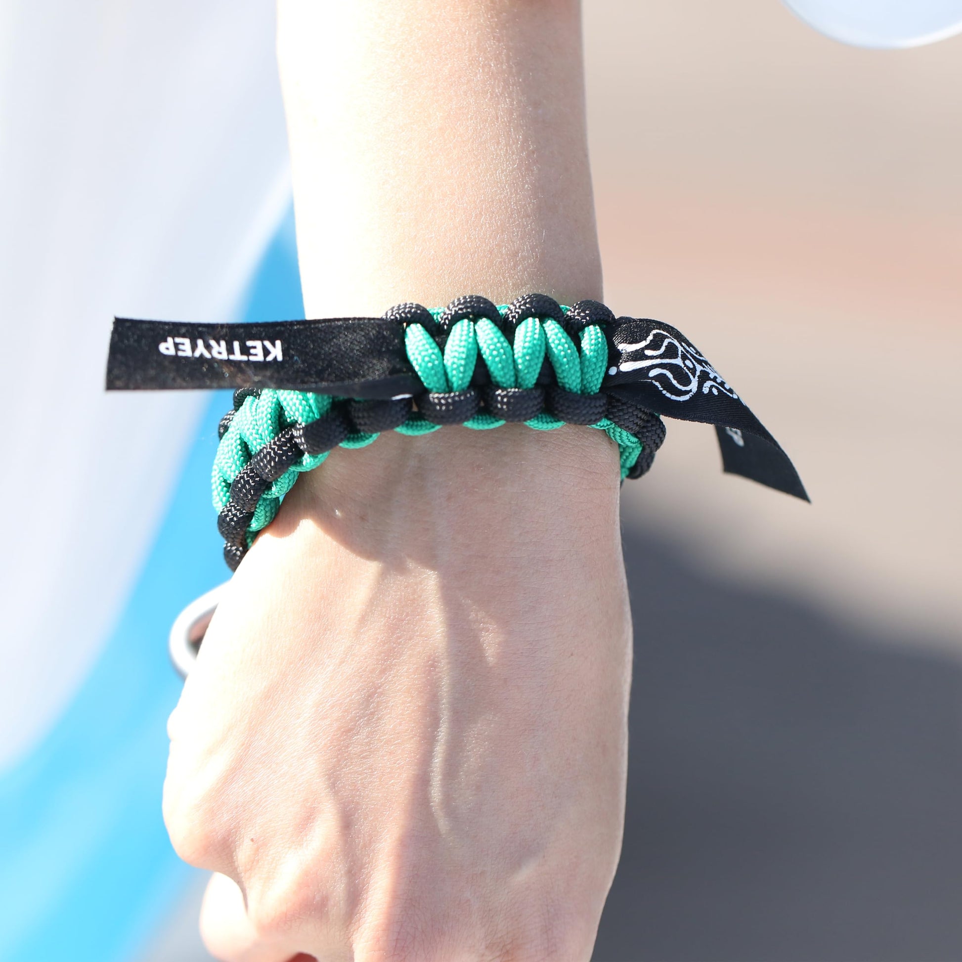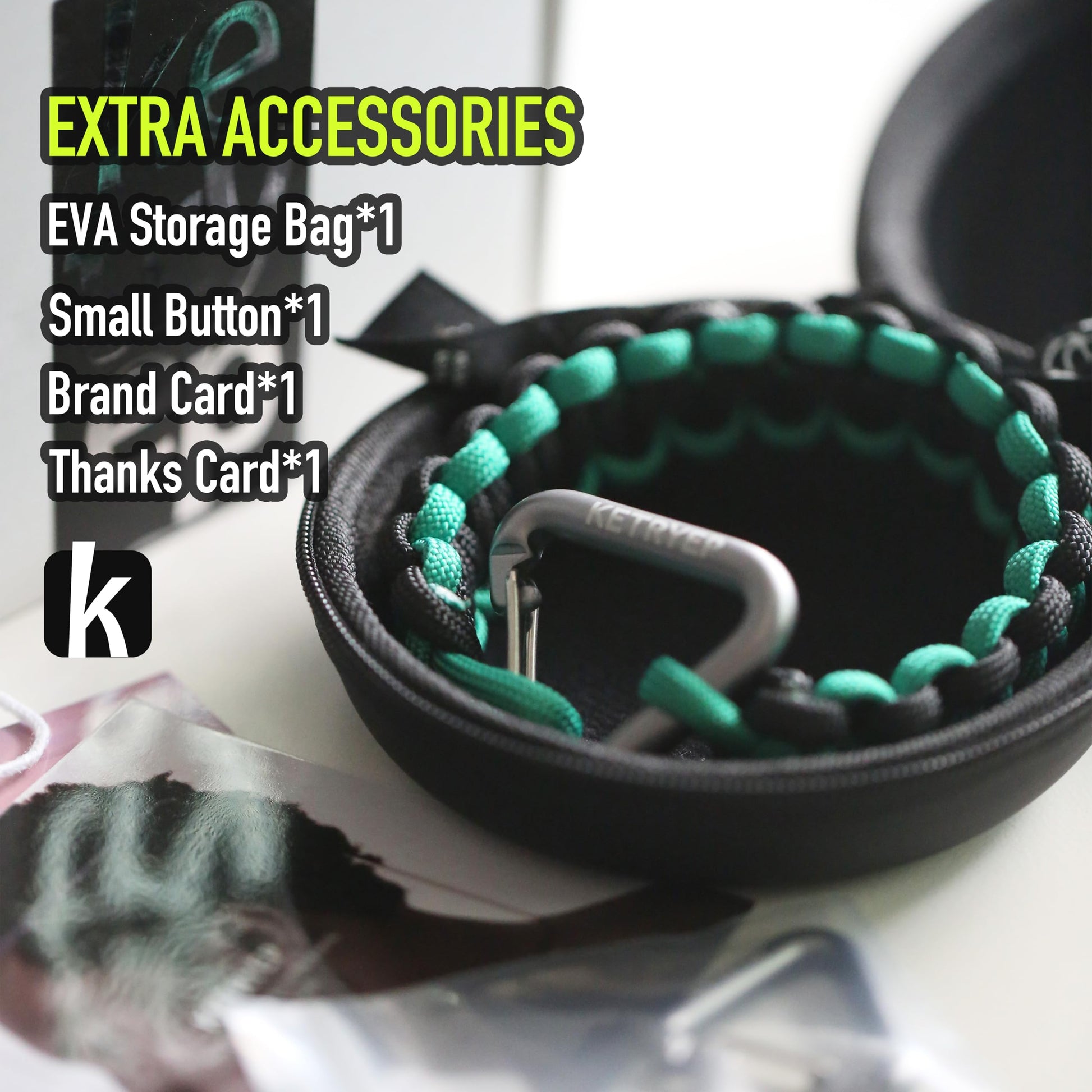 - 【Sizes and Accessories】Made with 7-core paracord, Model 1 rope spread length 44 inches / Model 2 rope spread length 76.5 inches + 16.5 inches, 4cm&3cm triangular carabiners, and a high-quality ribbon, this 8 inches(21cm) bracelet fits wrists from 6.5 to 8.5 inches.