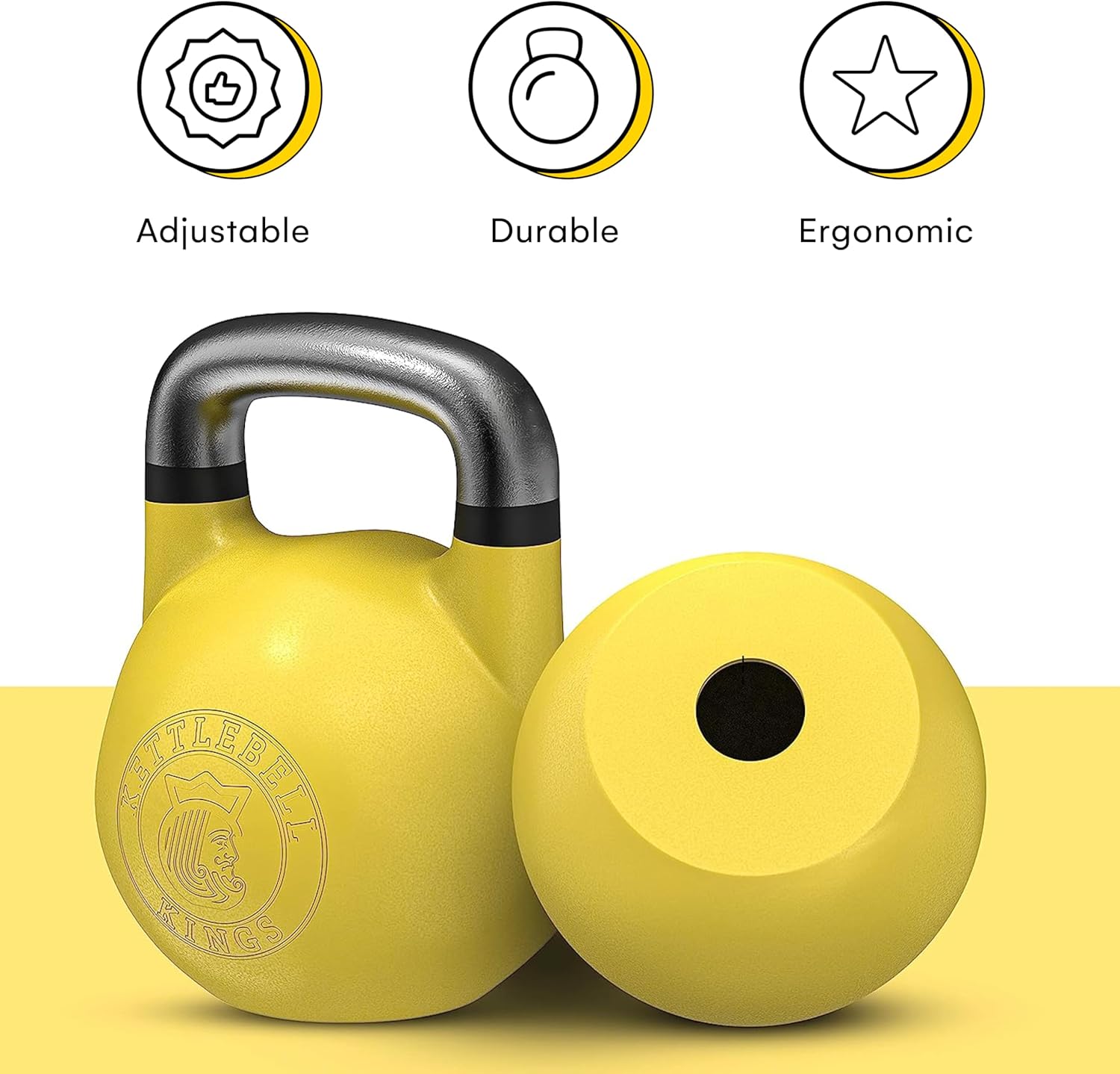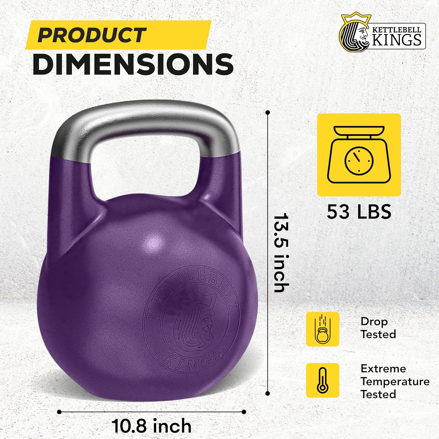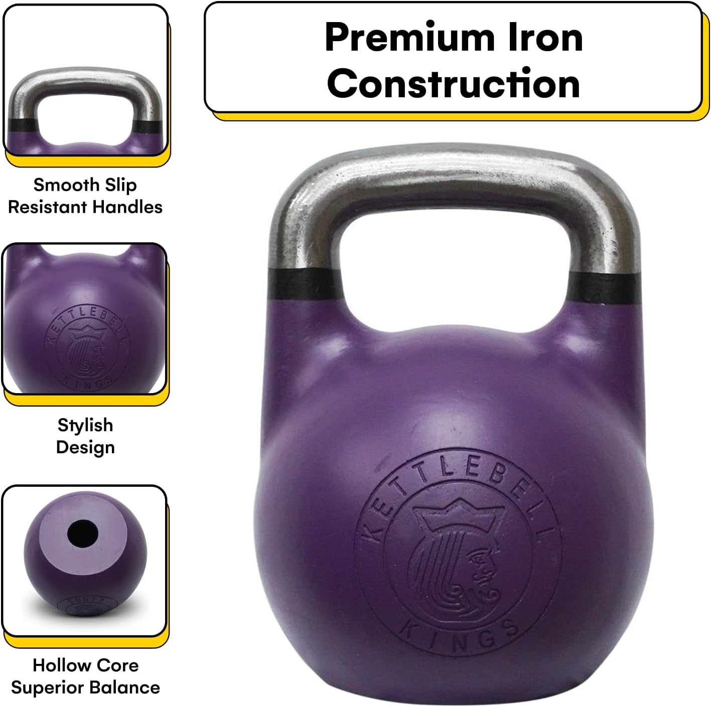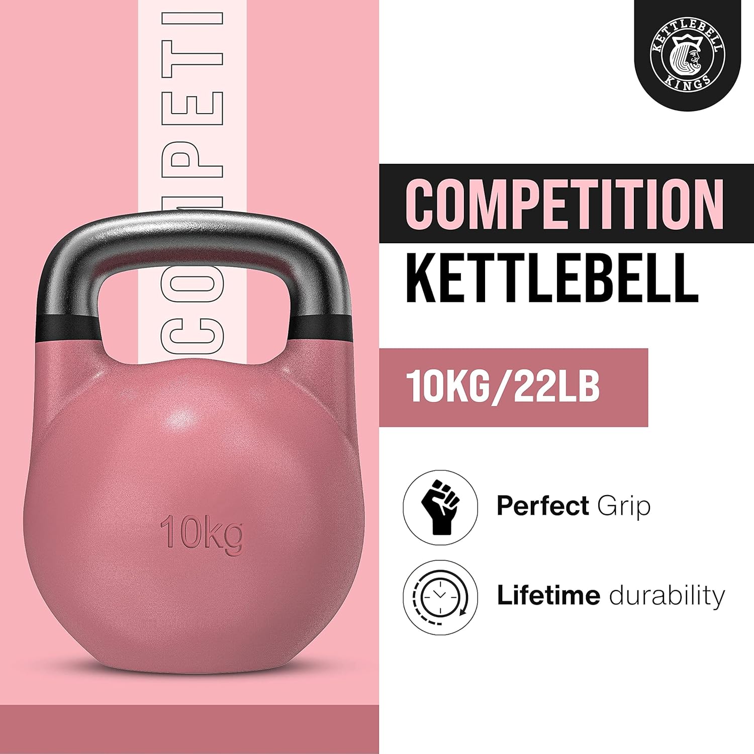 - PREMIUM DESIGN: Elevate your workouts with the Kettlebell Kings competition kettlebell. Its smaller size and ergonomic curvature provide effortless handling and comfort during lifts.