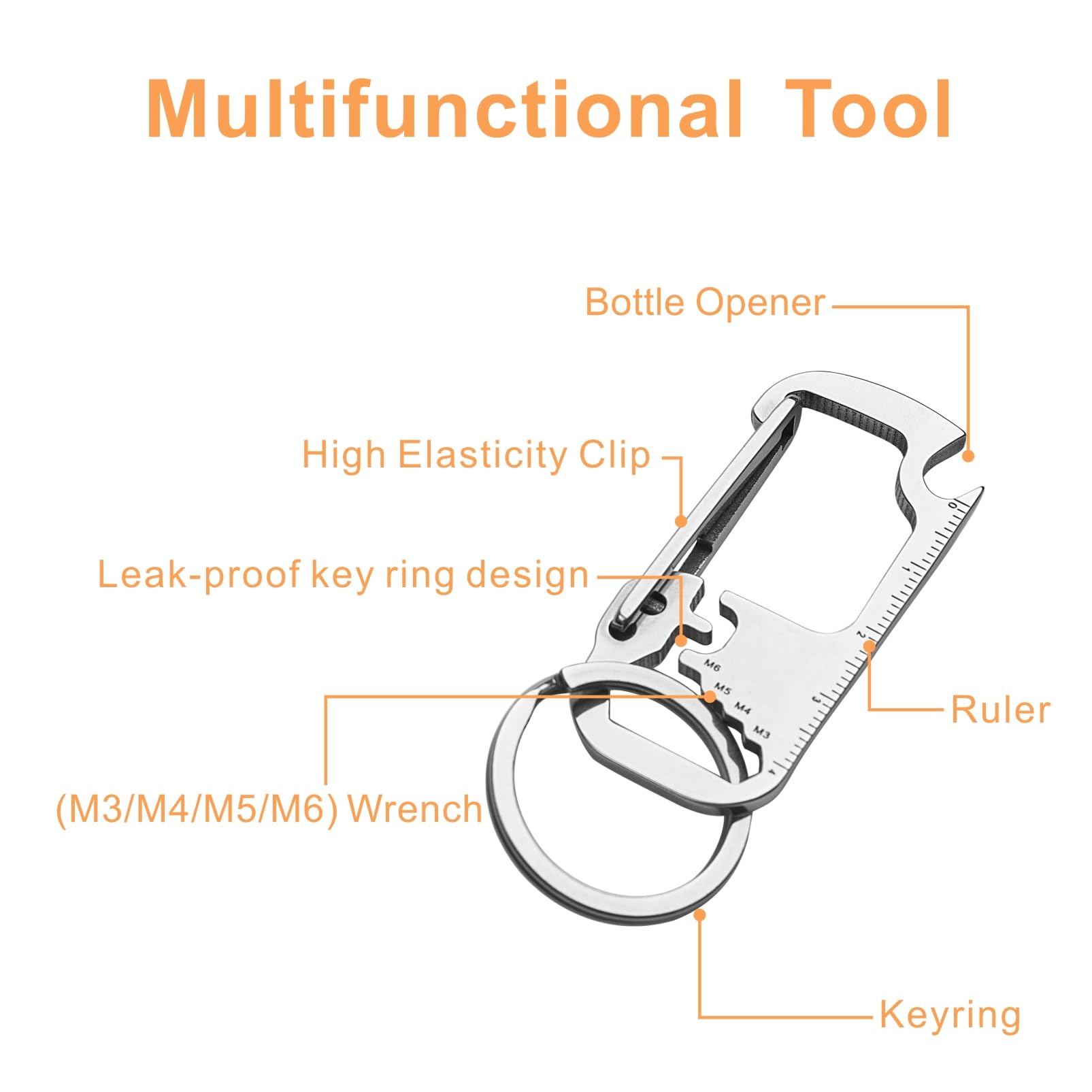 - Keychain Multitool: Equipped with essentials like bottle opener, 4 sizes hex wrenches, key holder, measuring ruler, carabiner clip. Perfect for everyday quick fixes, outdoor activities like hiking, camping or picnic, making it an essential EDC multi-tool for any situation.