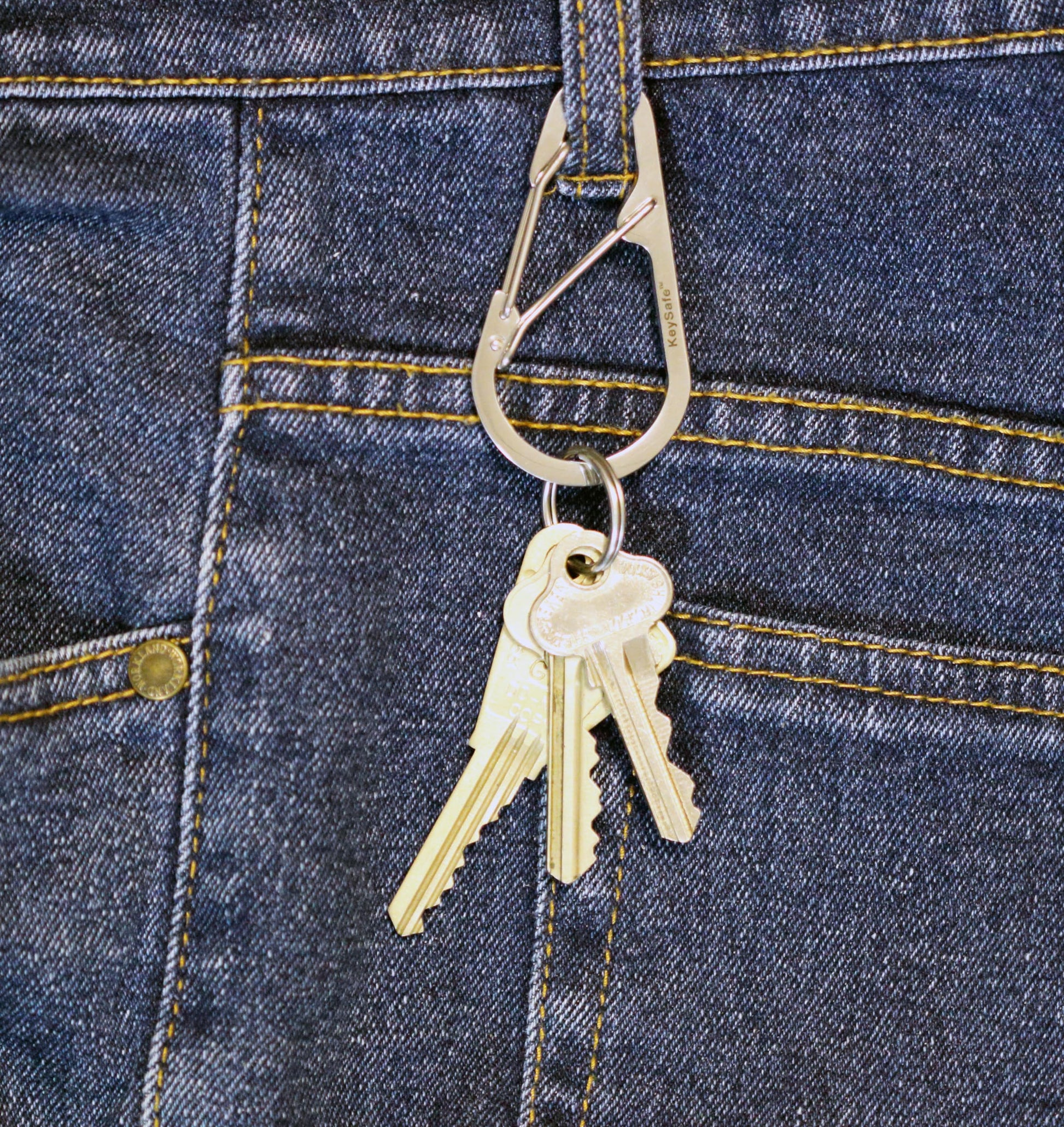 - SECURE DOUBLE GATE DESIGN – The patented double gate design with the four supplied stainless steel split rings creates a secured section within the carabiner that protects keys and other objects from being lost when the carabiner is placed onto or taken off belts and bags or even when carried in a pocket or bag.