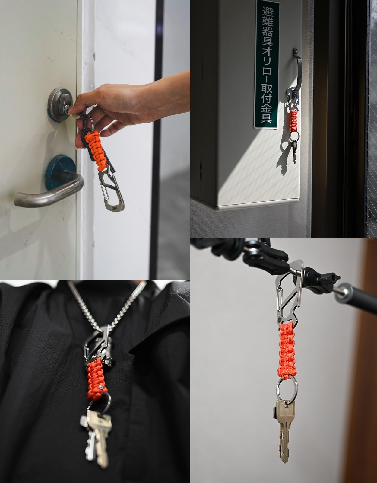 - Safe & Versatile: With a high-tensile stainless steel clip and no coil spring, the paracord keychain clip structure is built for lasting resilience. The smooth, auto-closing gate allows for easy one-handed use, securely attaching to belt loops, briefcase or bags, the bright colors of the paracord make you easier to identify in an emergency providing reliable durability for both outdoor and everyday activities