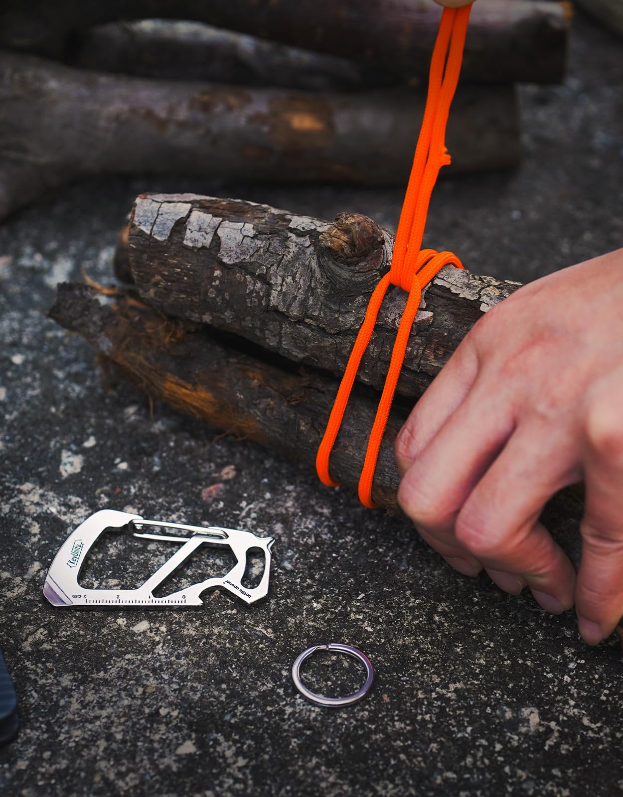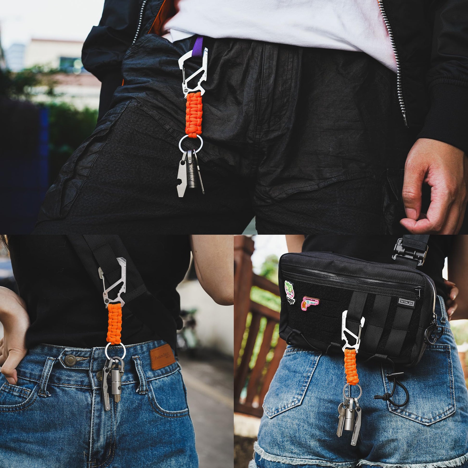 - Compact & Portable: With a total length of 5.7" and weighing only 1.14oz, this 550 paracord carabiner is practical and lightweight, making it easy to carry without adding bulk. The paracord keychain carabiner clip offers versatile uses, keeping your keys, flashlight, small tools, and other EDC gears well-organized. It can also hook onto grocery bags for convenient carrying, and it makes an ideal gift for both men and women