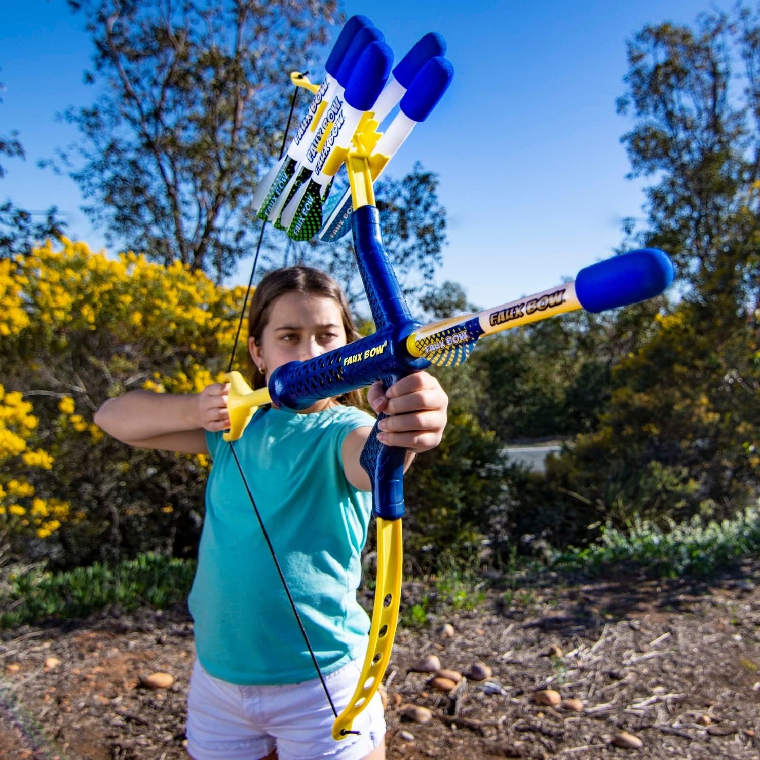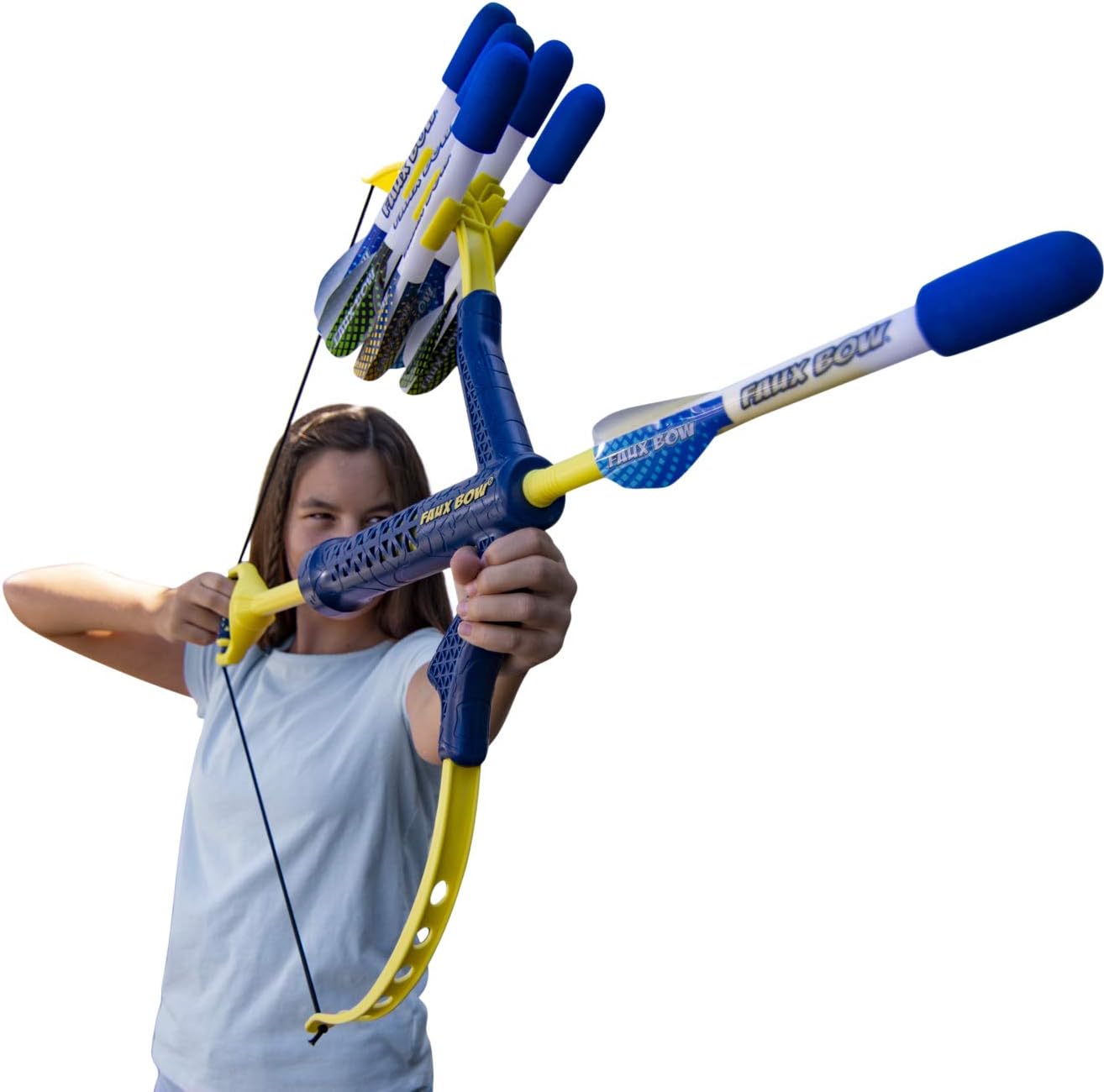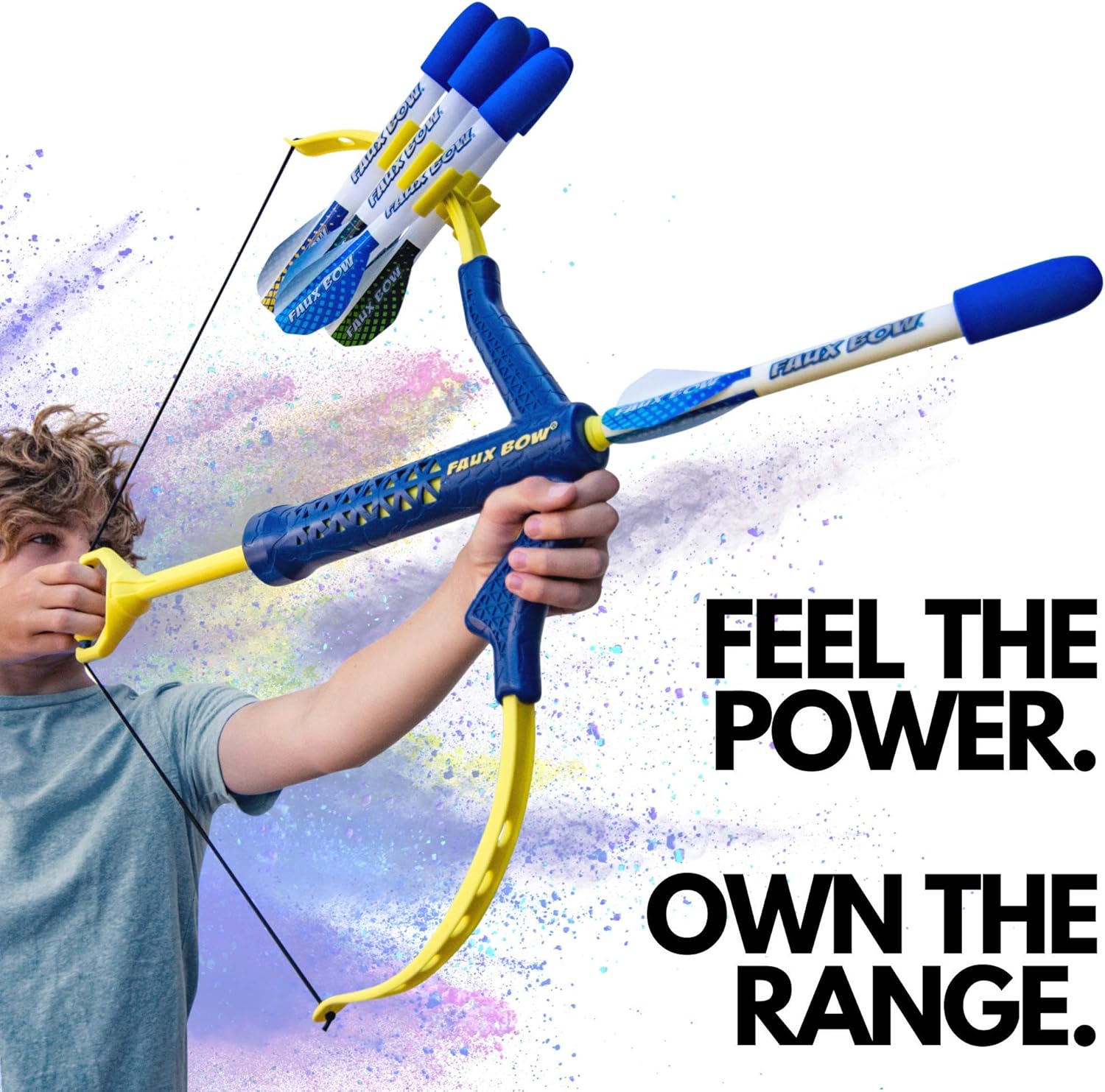 - DON’T ACCEPT IMITATIONS: The Faux Bow 4.0 gets a sleek new look from the original foam blaster bow and arrow. Now with a performance spinning handle so you can release and shoot even faster.