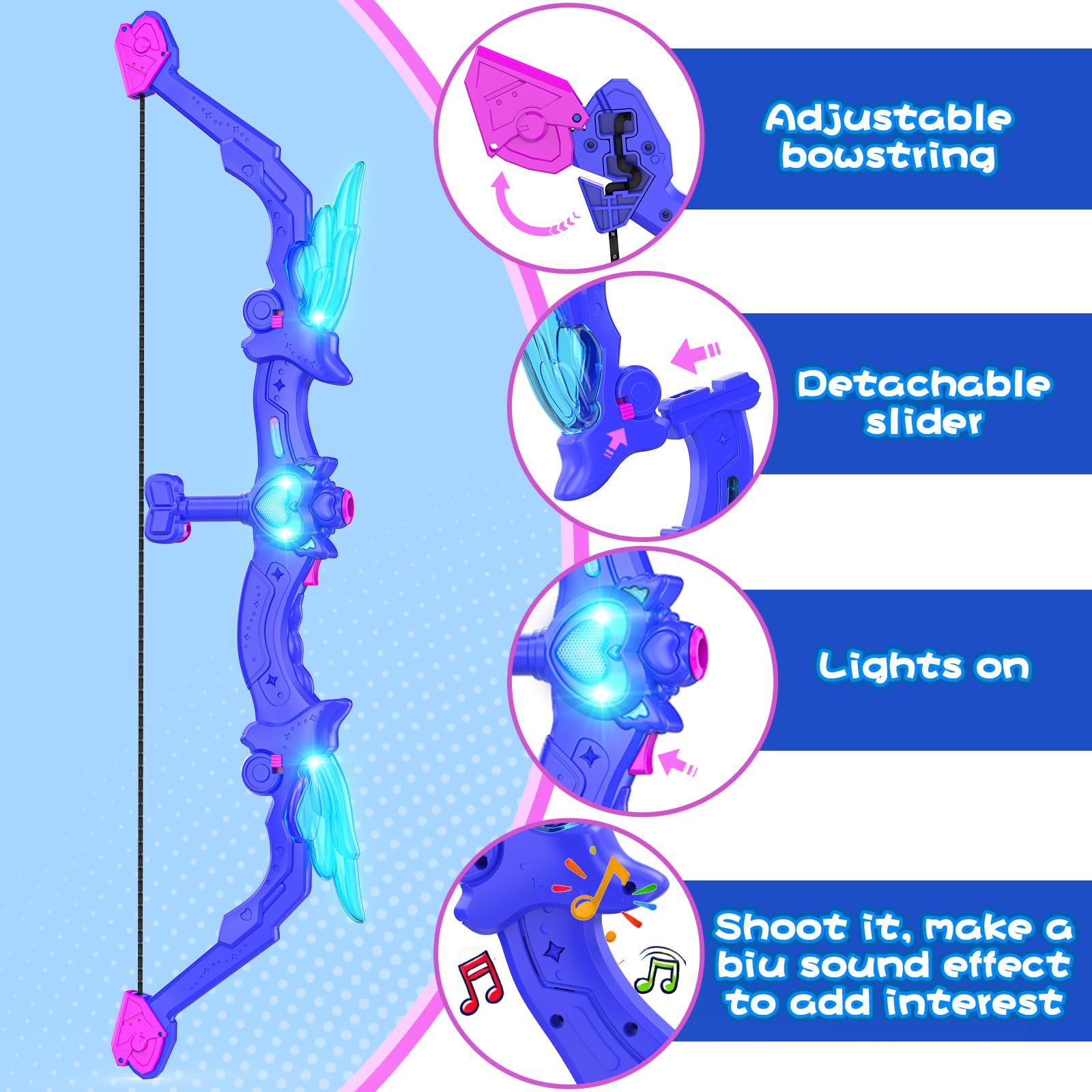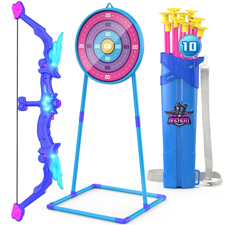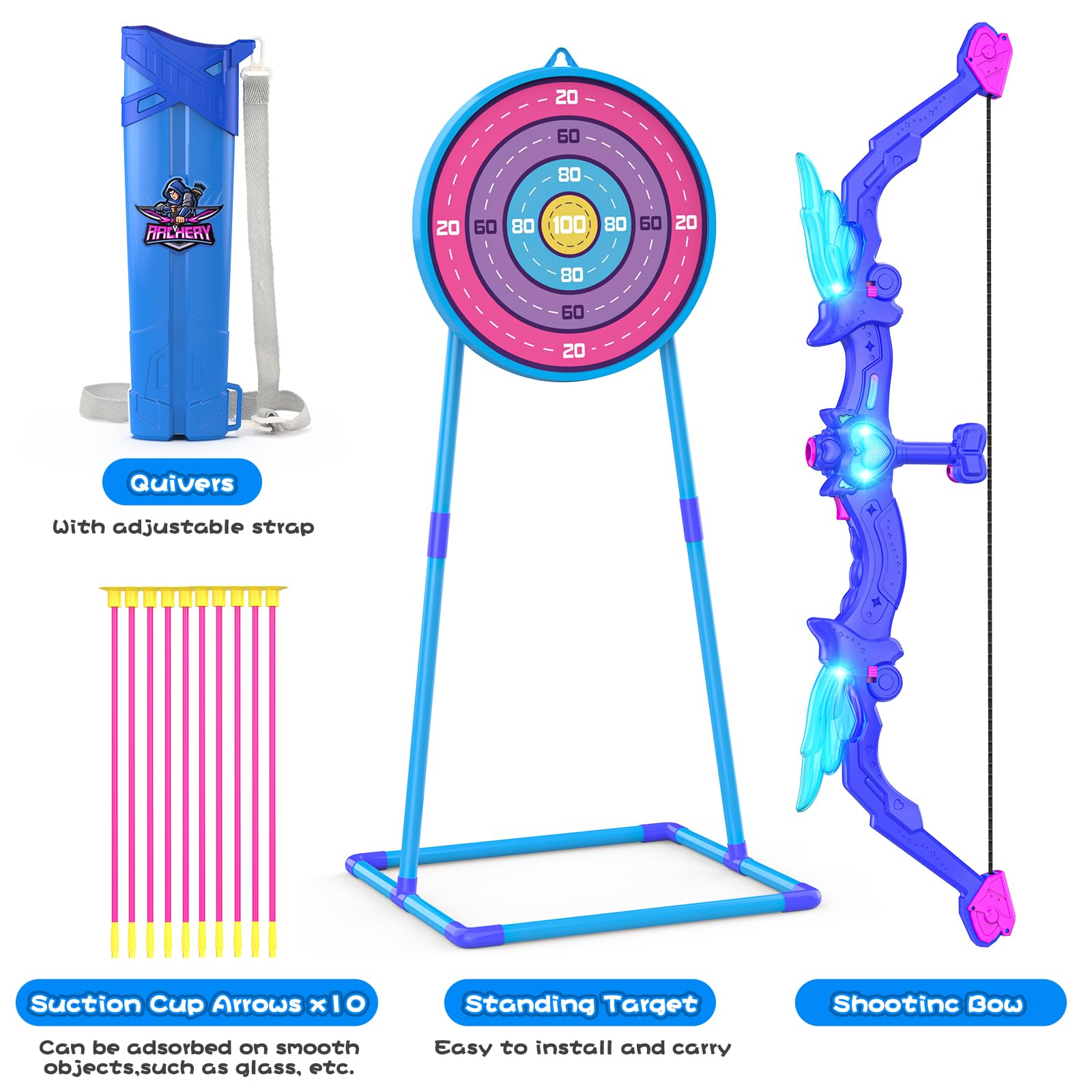 Kids Bow and Arrow Toy, Angel Light Up Archery Set W/ 10 Suction Cup Arrows, Targets & Quiver, Outdoor/Indoor Games for Kids Ages 4-7 8-12, Birthday Gifts for 4 5 6 7 8 9 10 11 12 Year Old Boys Girls