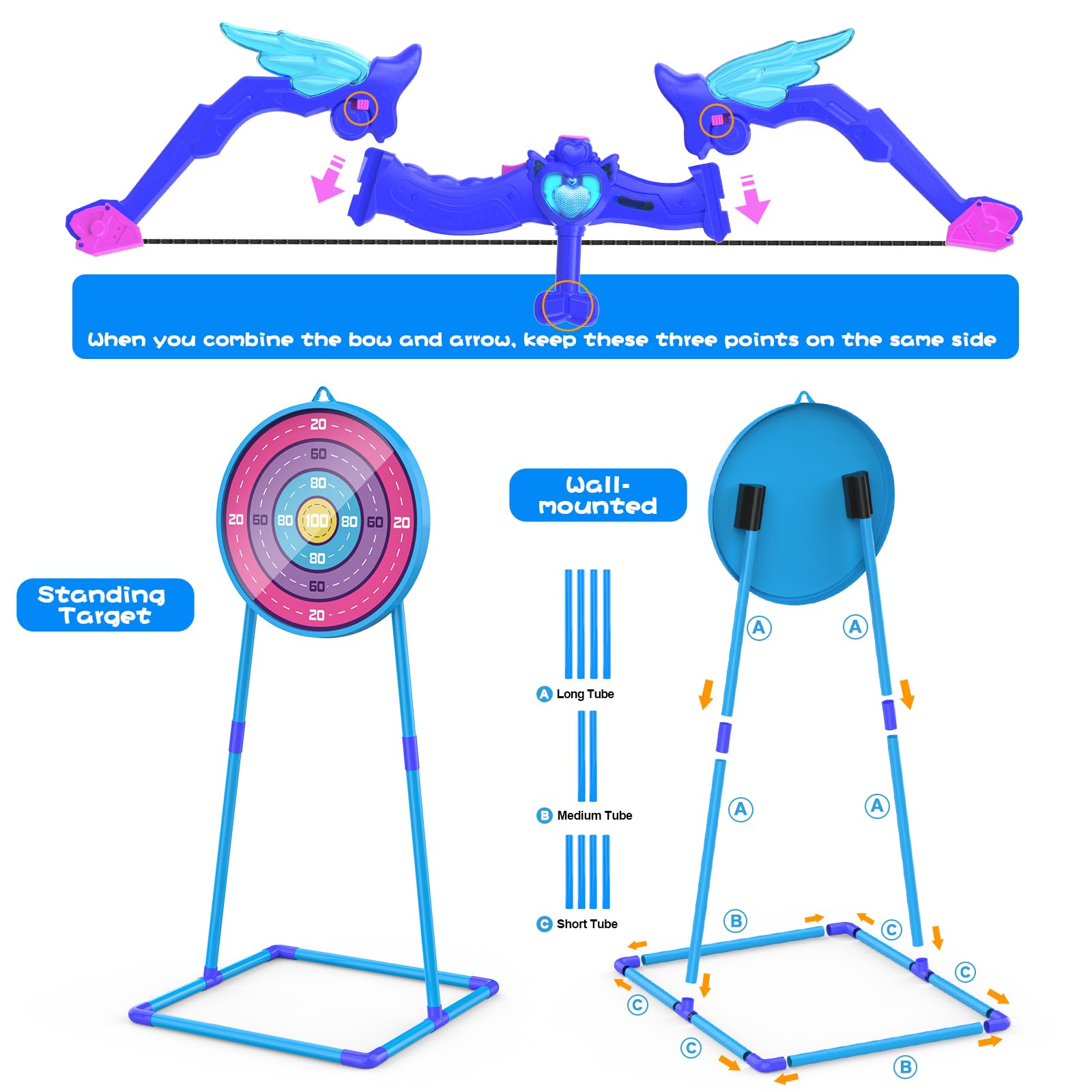- Start Aiming & Firing Right Away: This bow and arrow set comes with a detachable target stand, a dreamlike light bows, 10 suction cup arrows and a quiver. Ideal bow and arrow toy for kids 4-7 8-12