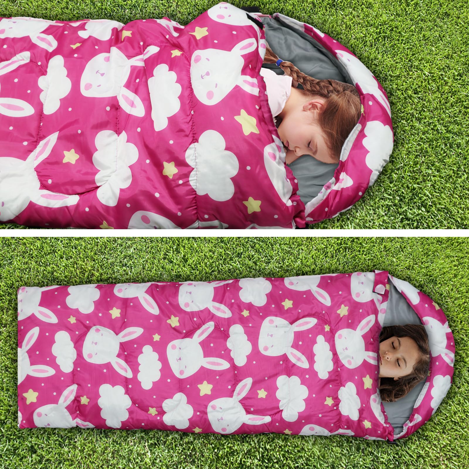 Kids Sleeping Bags - Camping Sleeping Bags with Carry Bag - Compact Sleeping Bag for Hiking, Backpacking 3 Season Warm & Cool Weather, Lightweight Waterproof Outdoor Travel for Boys Girls (Pink)