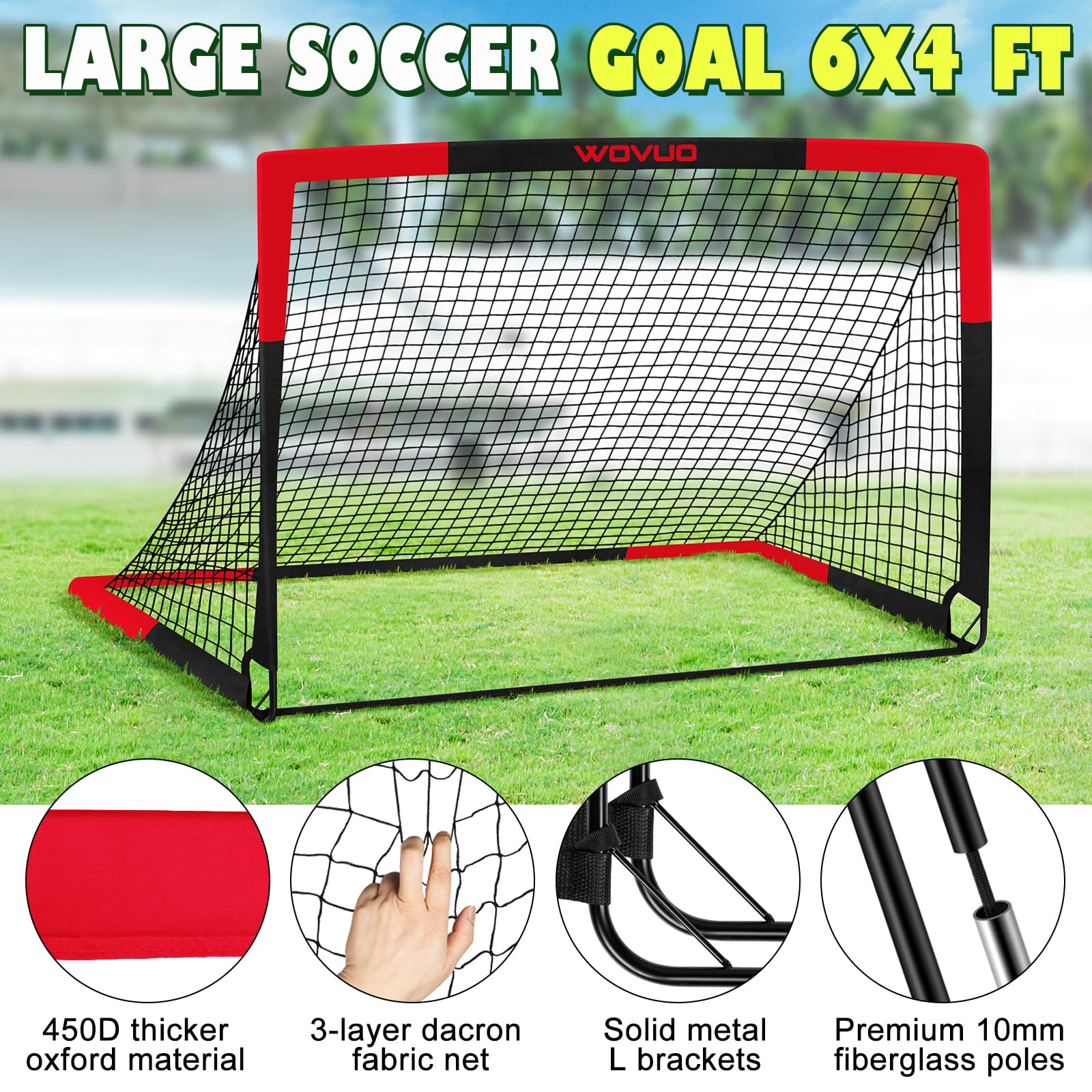 - Soccer Practice& Entertainment: This is a portable soccer goal practice equipment tailored for toddlers, kids, youth, teenagers boys, and girls ages 1-15. Our 6x4ft pop up soccer net is the ideal size for backyard games, and soccer training sessions. It provides enough space for exciting gameplay with friends and family in various outdoor spaces. Our kids soccer goal set offers endless hours of entertainment for players of all ages and skill levels. To develop their teamwork, motor, coordination