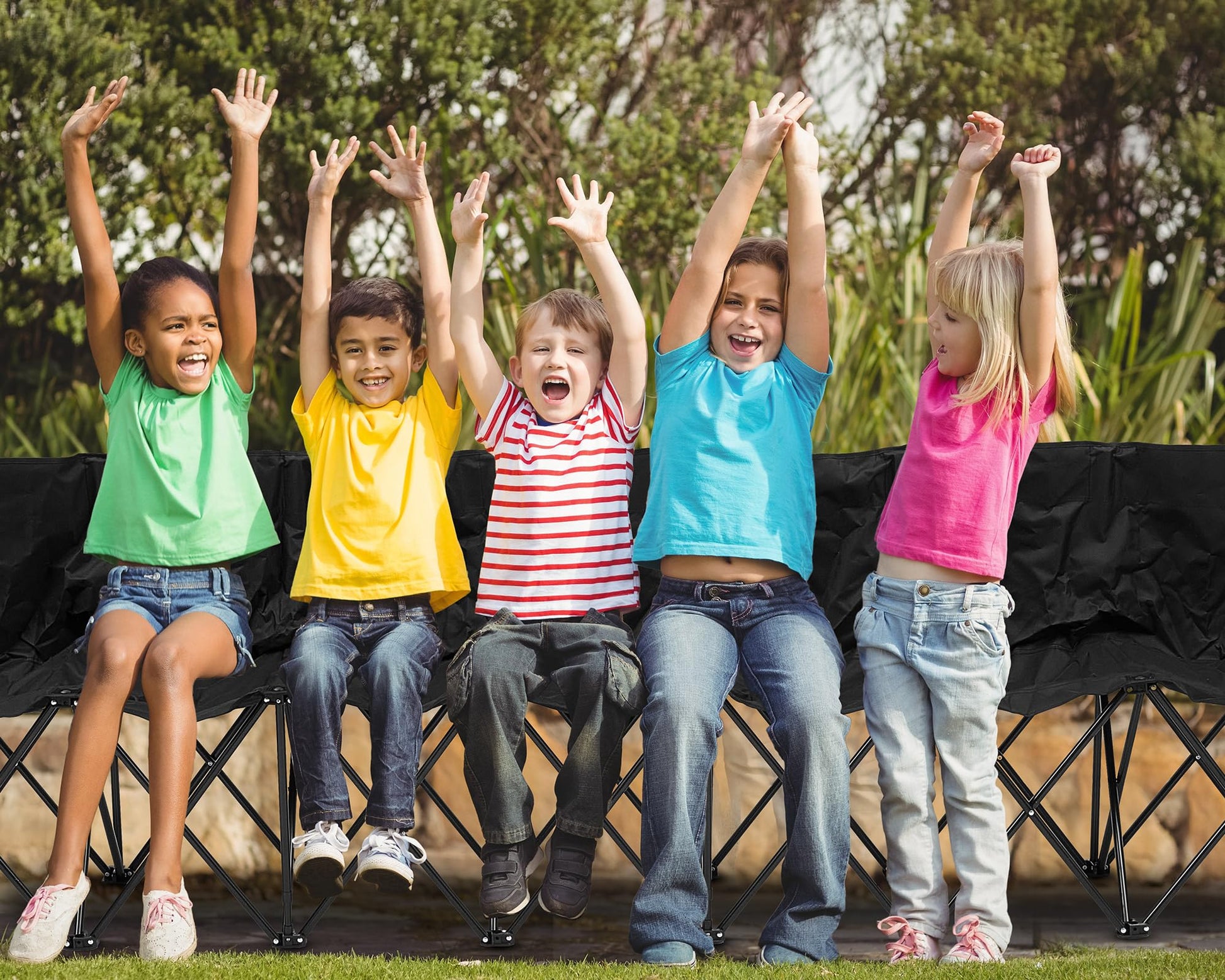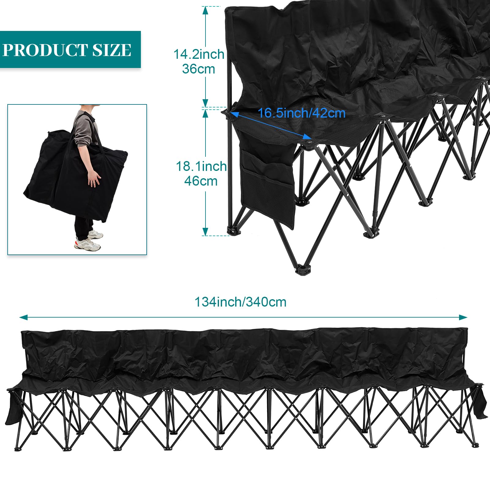 - Package and Dimensions: you will get a 9 seats folding bench chair as well as a carry bag, each seat is about 16 inches wide and the backrest is about 11.5 inches high, suitable for adults, teenagers and children, providing enough room for 9 people to sit comfortably; The spacious seating area allows everyone to enjoy the game without feeling cramped, ensuring a good using experience