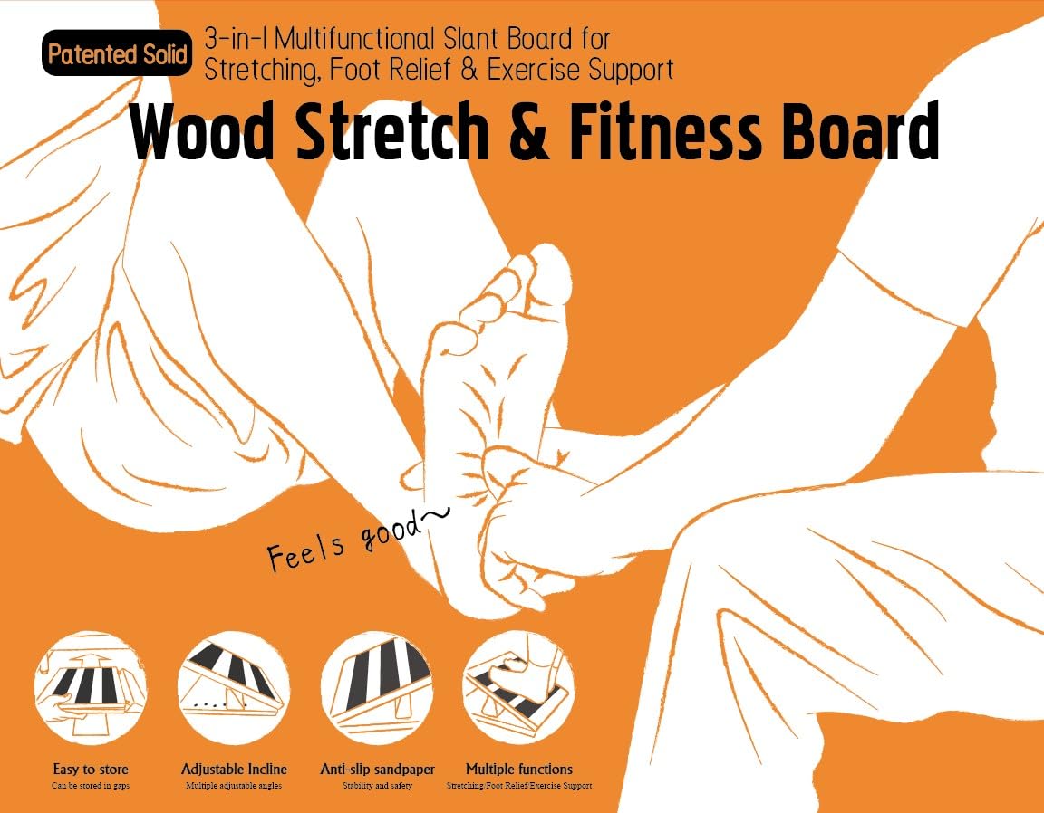 - ASSISTED RECOVERY - KIJO Studio wooden adjustable calf stretch slant board for calf stretching helps in recovery from plantar fasciitis, calf strains, ankle sprains.