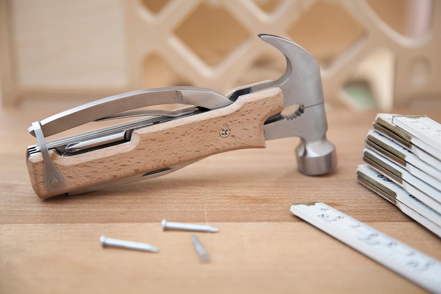 Kikkerland 10 in 1 Pocket Compact EDC Gear Equipment Stainless Steel Multi-Tool, White, Wood Handle, for Outdoors, Camping Tool Accessories Survival