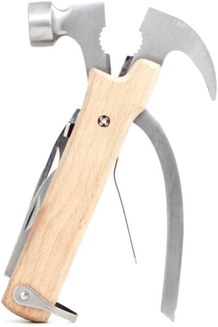 Kikkerland 10 in 1 Pocket Compact EDC Gear Equipment Stainless Steel Multi-Tool, White, Wood Handle, for Outdoors, Camping Tool Accessories Survival