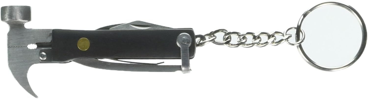 • Functions include hammer, wire cutters, pliers, flat head screwdriver, bottle opener, reamer, saw blade, Phillips head screwdriver, file, and knife blade.