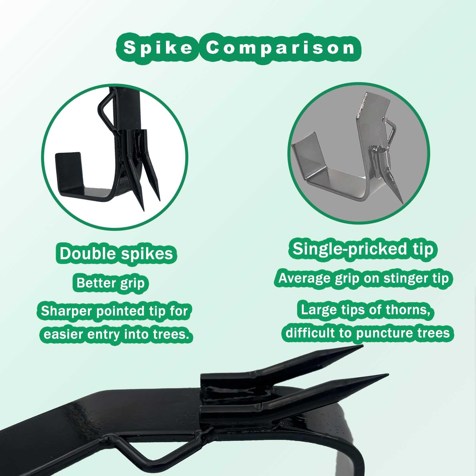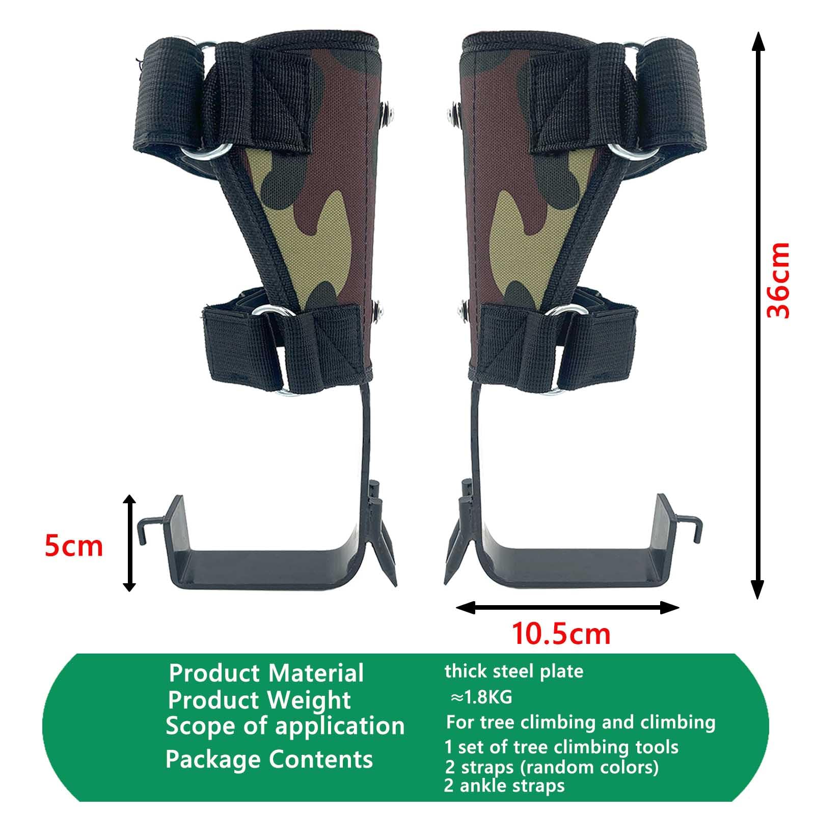 - 【Premium Material】Tree Climbing Spikes are made of high hardness carbon steel, the claws are sharp and hard enough to ensure safe and efficient piercing through climbing trees.Tree Climbing gears are suitable for professional use. If you are a beginner, you need to practice in a lower place, be proficient in operation before climbing trees. It is recommended to practice until you are proficient in using spikes before climbing higher and wearing other protective equipment