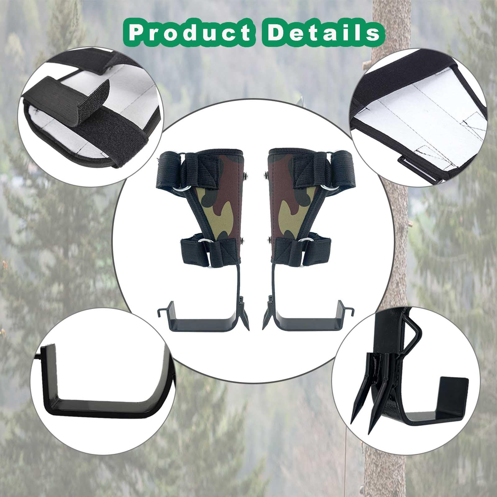 - 【Upgraded Non-Slip Treads】This tree climbing gear comes with sharp wear-resistant claws and widened non-slip treads, the upgraded non-slip treads are basically level with the tips of the tines, which is conducive to a better standing position when climbing trees.