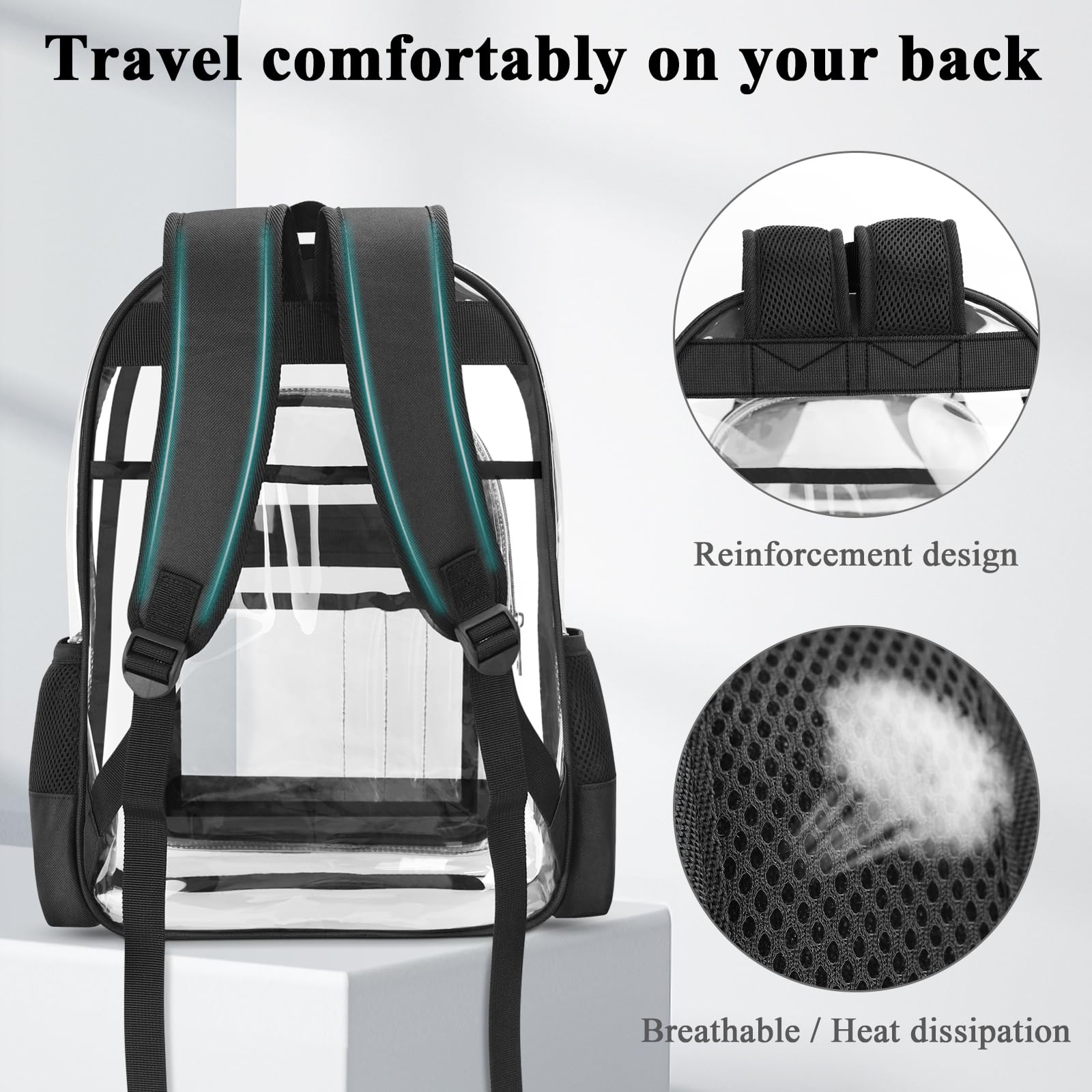 - Reinforcement Stitching: The connection between the shoulder strap and the clear backpack bag body is reinforced with multiple stitches, which is sturdy and not easy to break. This transparent backpack is sturdy and robust.