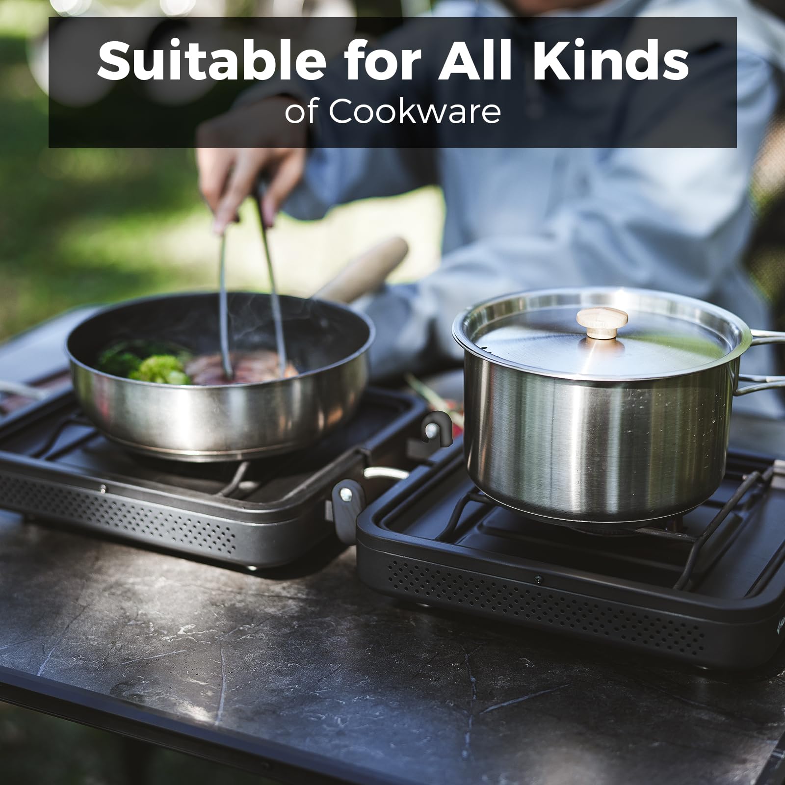 - Built To Last:The 2 burners are made of rust-resistant, heat-resistant cold rolled steel with a durable matte frosted shell surface. Capable of supporting 11 lbs each