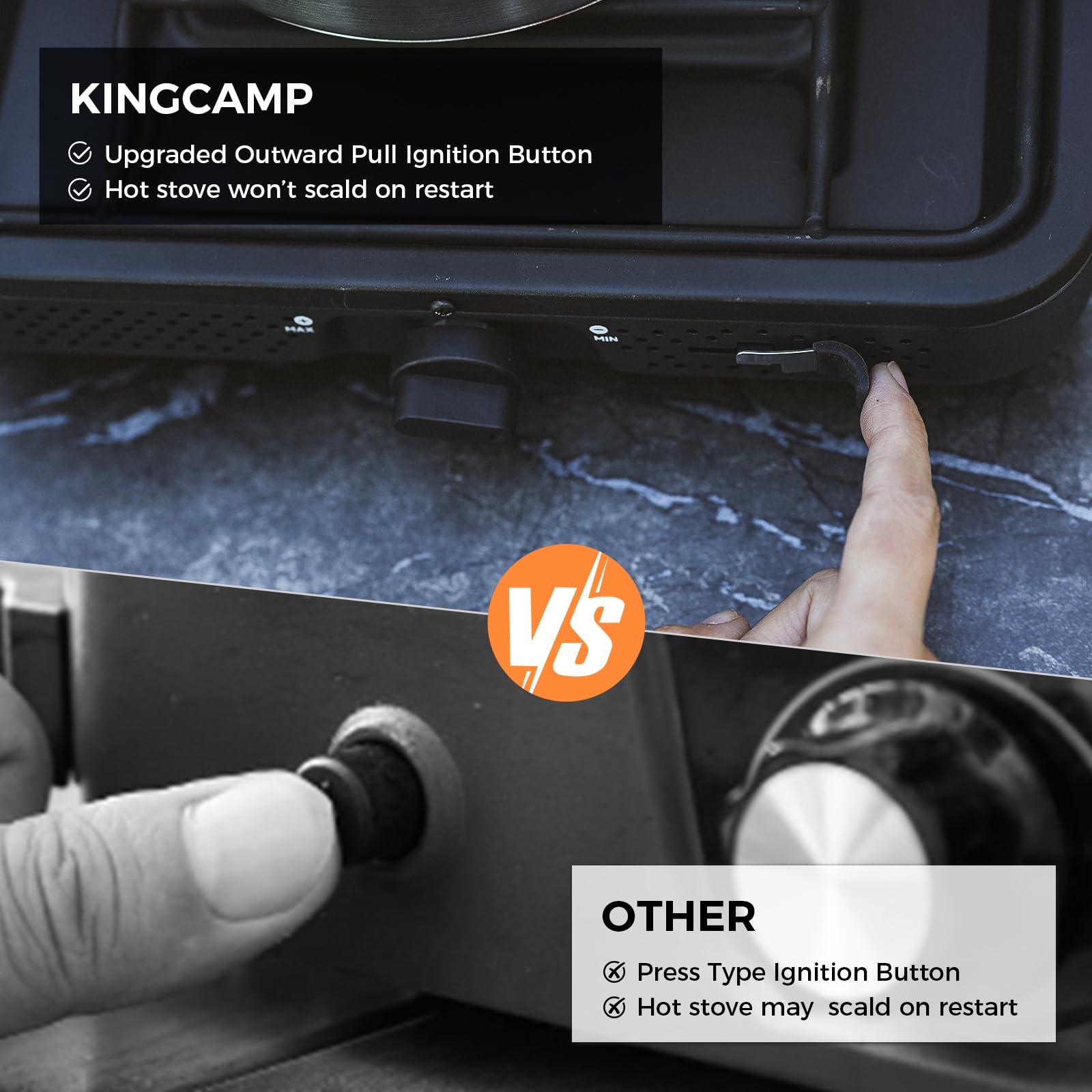 KingCamp 2 Burner Camping Stove,Portable Folding Stove with 20000 BTU,Backpacking Camp Stove for Outdoor Cooking,2 Adjustable Burners & Piezo Ignition for BBQ Hiking Backpacking Camping