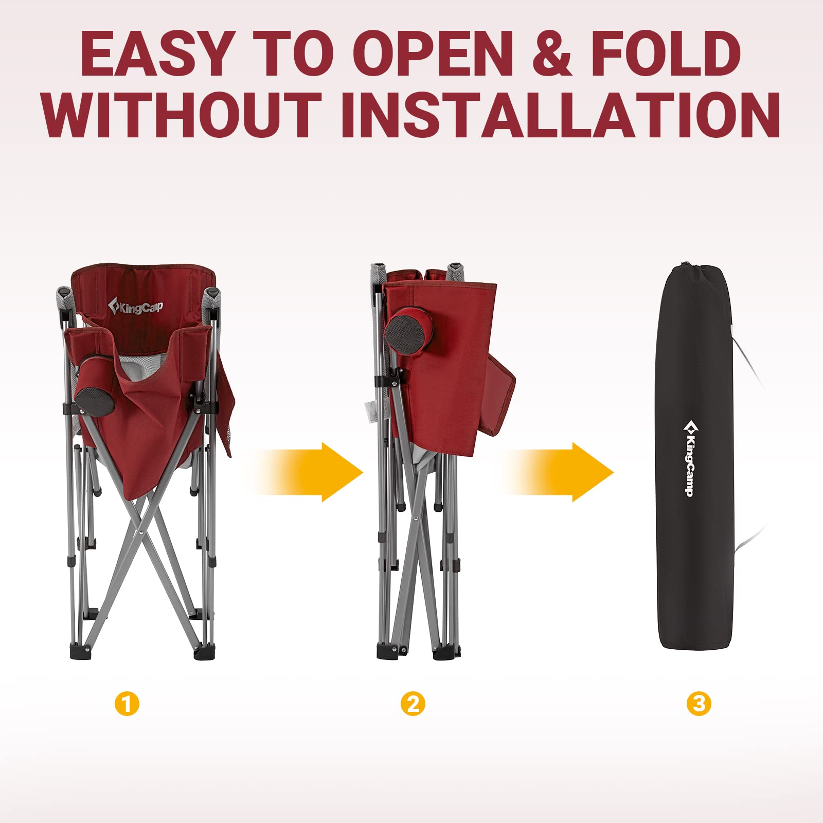 - 【Camp Chair Size】KingCamp portable camping chair open size:28.7"L x 23.2"W x 37.4"H, Fold Size:38.7" x 7" x7".KingCamp fold camp chair that weighs only 9.4lbs is very lightweight and easy to carry around. The fact that it's easy to store and doesn't take up much room, as it means you can pack it away quickly and easily when you're done using it.