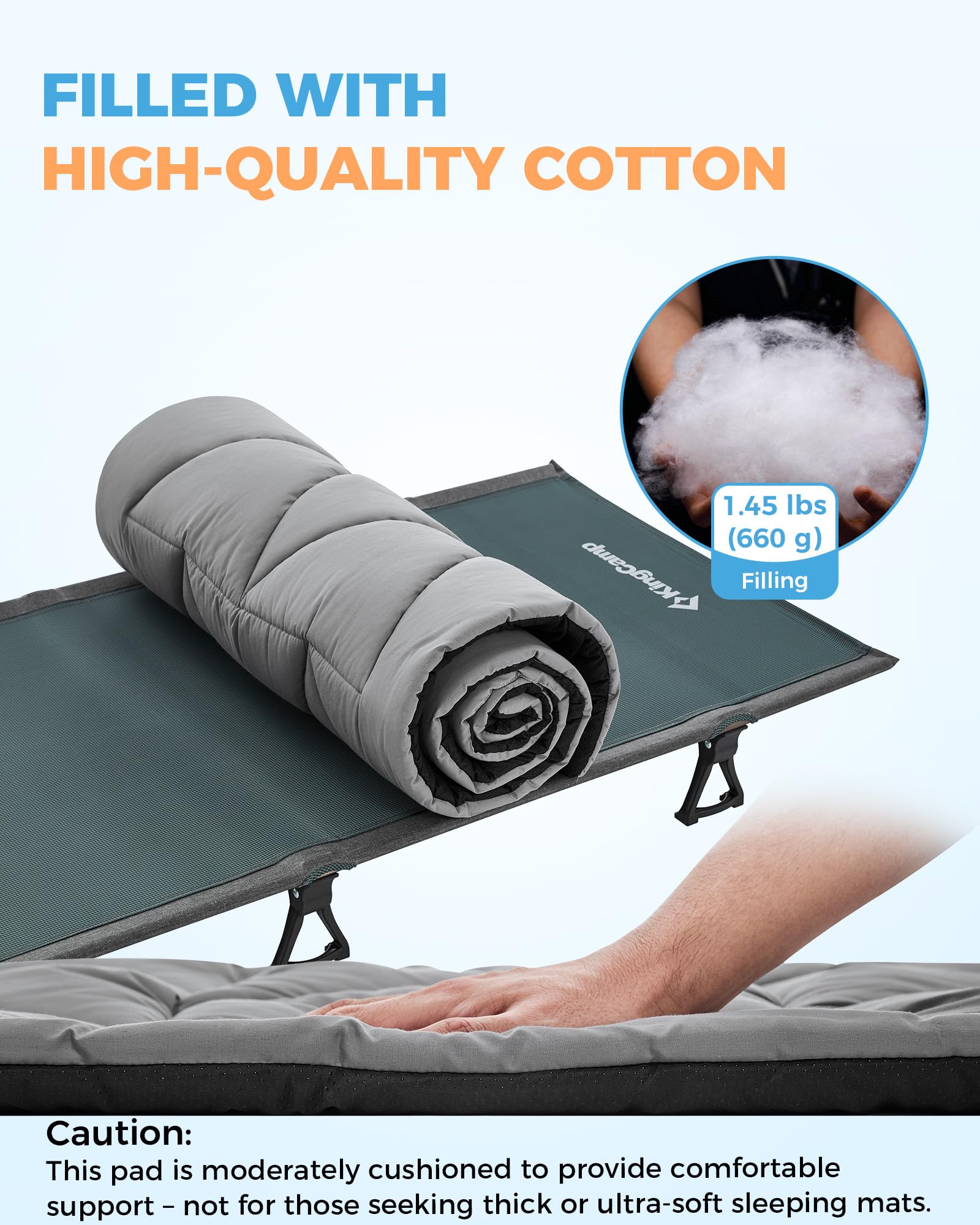 KingCamp Cot Pad for Camping, Comfortable Lightweight Mat, Puffy Soft Warm Non-Slip Cot Mattress Topper for Outdoor, Backpacking, 75"* 25", Grey
