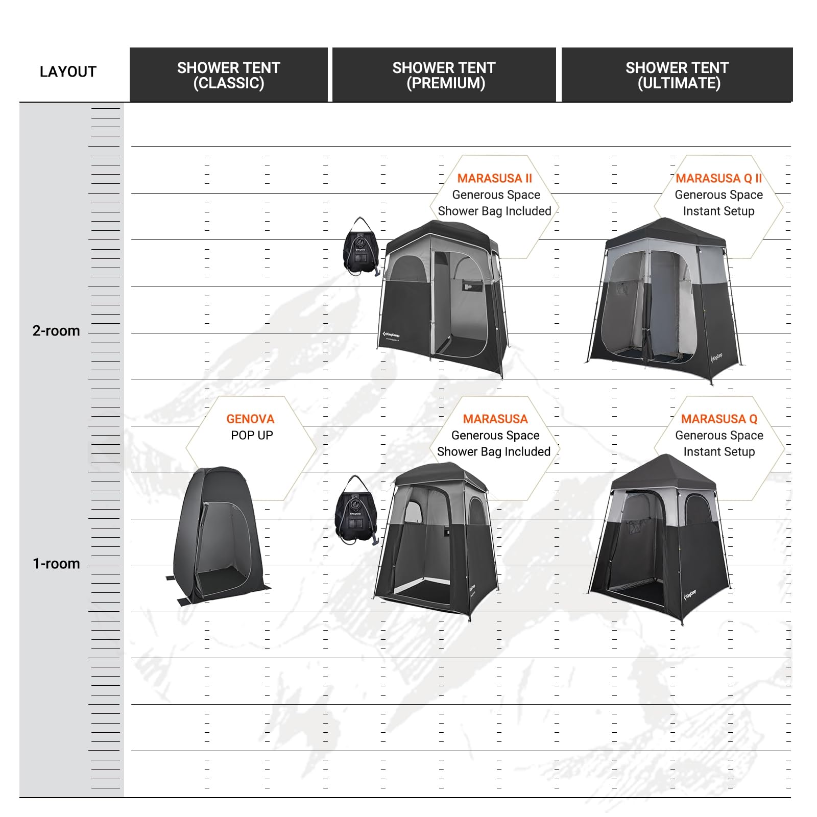 - SETUP IN UNDER A MINUTE: No tools required! Simply unfold the tent, extend the poles, and listen for the "click" sound to complete the setup. The entire process takes less than 60 seconds, offering a hassle-free and quick shower tent experience. Comes with a storage bag for easy transport, with packed dimensions of 42" x 7" x 8".