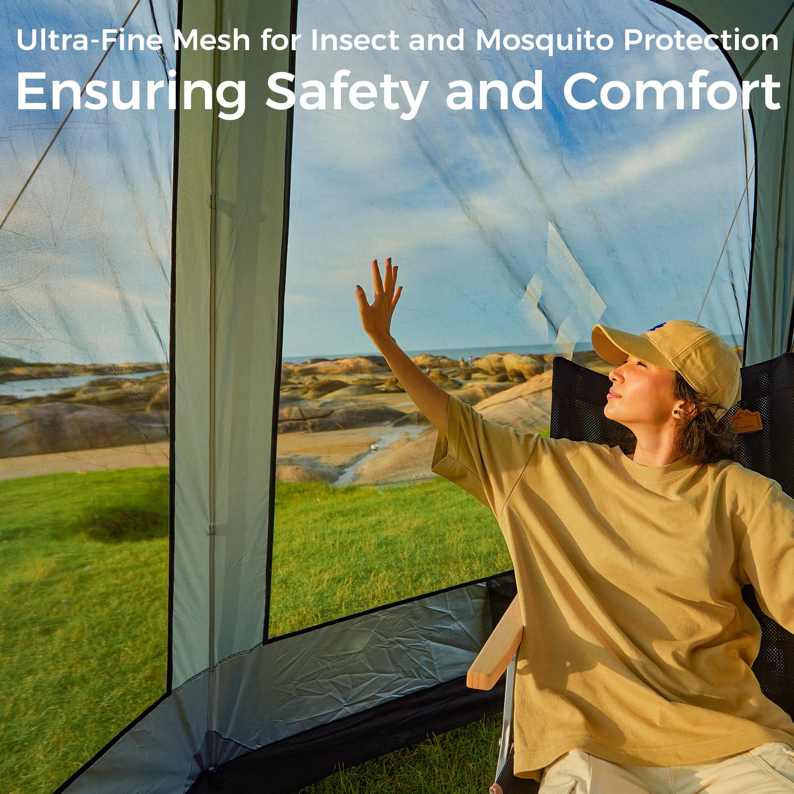 - SUPERIOR VENTILATION & UV PROTECTION: Equipped with six-sided B3 mesh, this tent offers 360° ventilation to keep the air flowing and prevent any discomfort. The high-quality Oxford fabric with a silver coating provides UPF 50+ sun protection, while the removable sunshade adds an extra layer of defense against harmful UV rays.