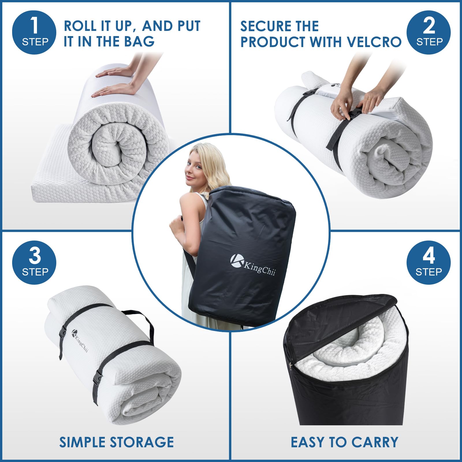 KingChii Memory Foam Camping Mattress, Portable Roll Up Sleeping Pad for Road Trip, Floor Mat Roll Up Futon Mattress for Guests Sleepoverr