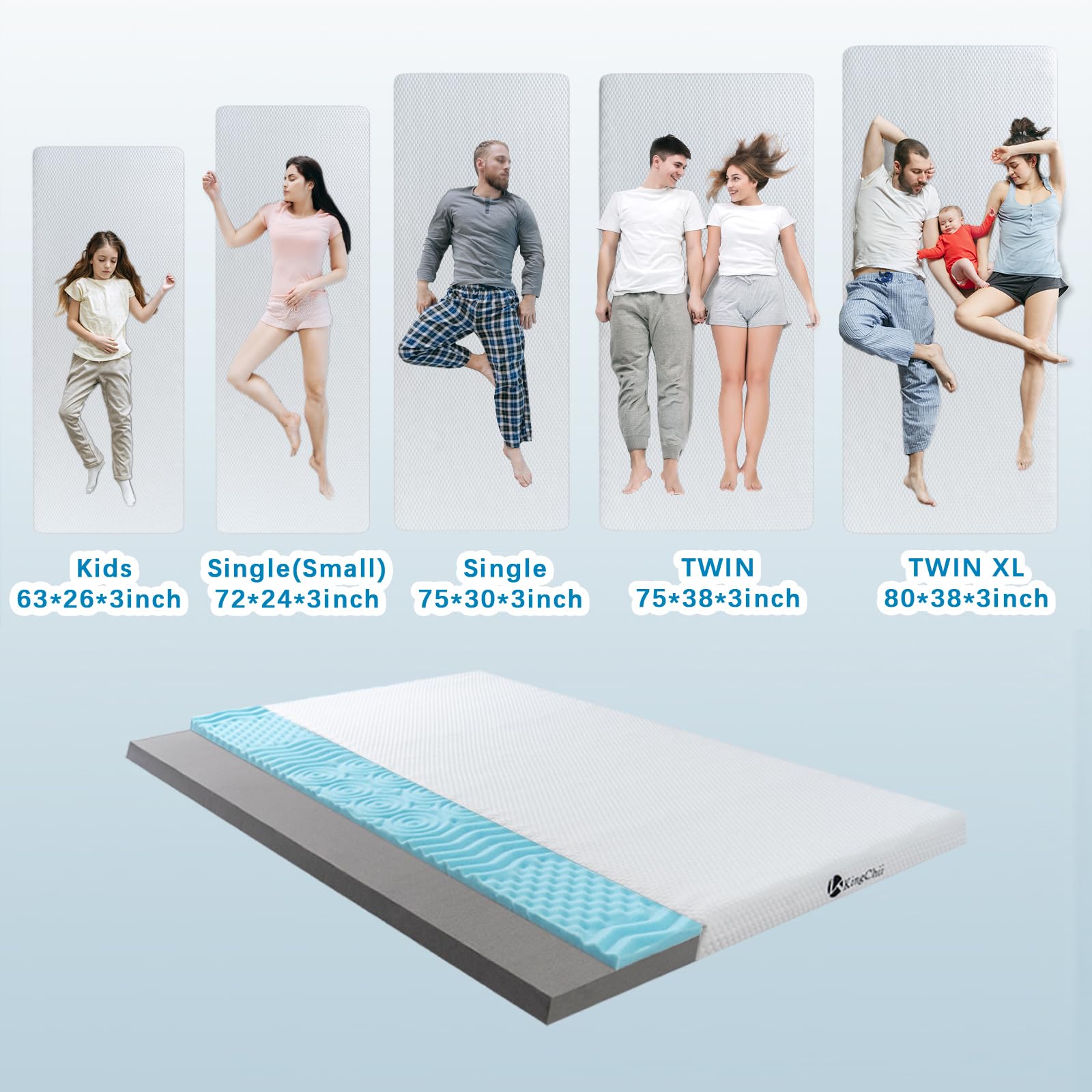 - 【THICKER & SLEEP COMFORTABLY】 — The upgraded kingchii foam sleeping mats for camping is up to 3 inches thick. It also contains 1/3 memory foam(Temperature affects product thickness and rebound time. Full swelling to 3 inch may take 24 hours.)The cloth cover is made of velvet. Let you relax wholeheartedly.