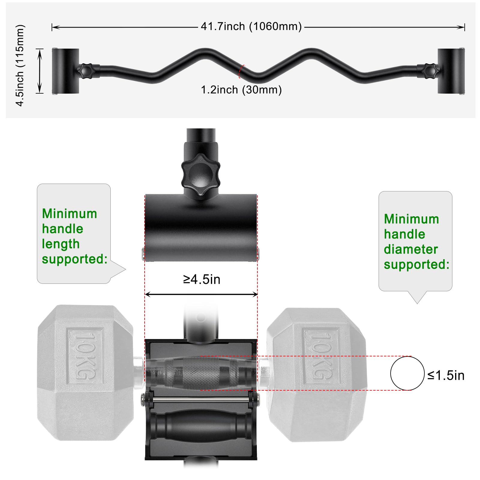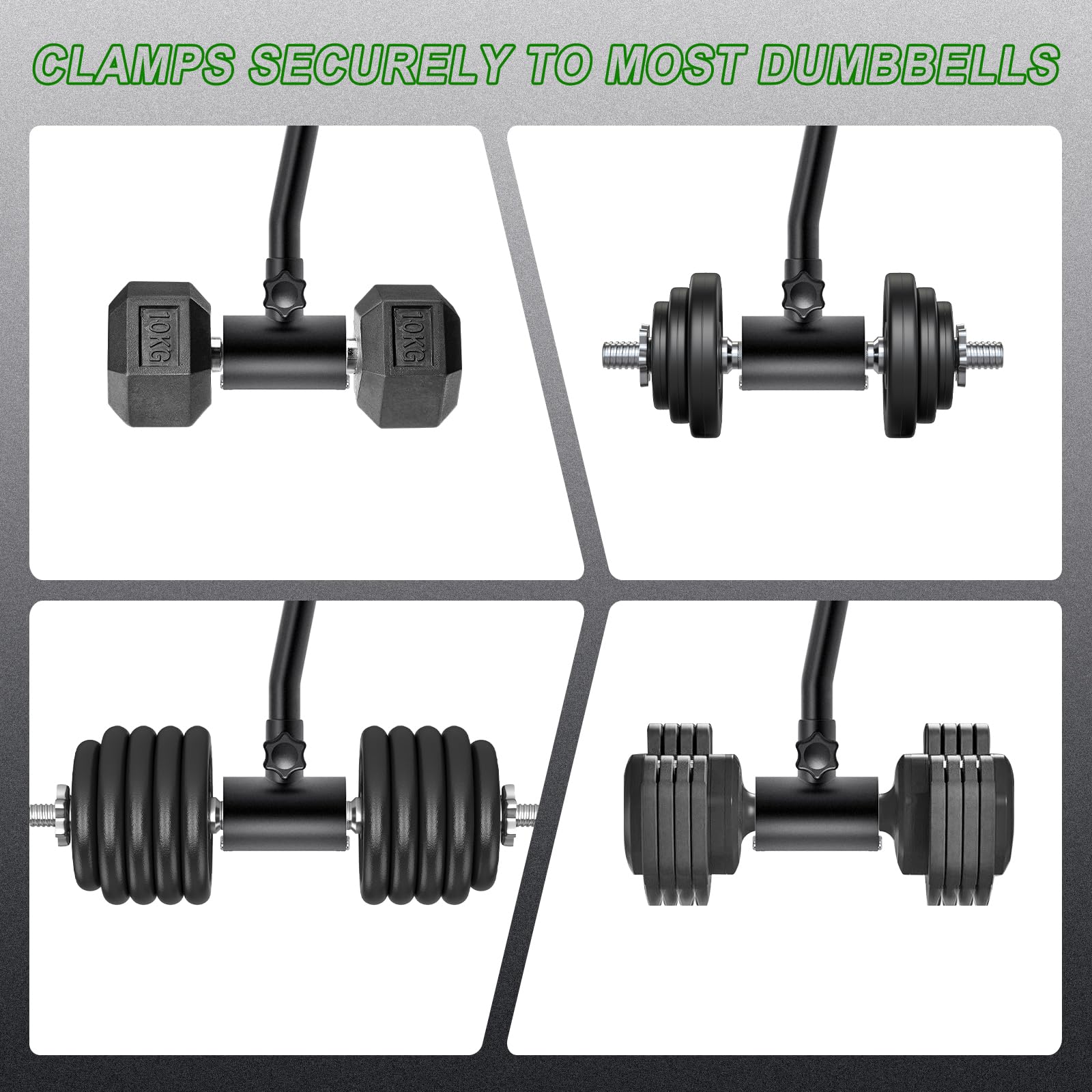 - "High-Quality and DurableMade with high-quality materials and a black powder-coated finish that prevents rust. Can hold up to 100 pounds per side, ensuring durability and longevity. Fits Most DumbbellsOur converter fits most standard dumbbells and adjustable dumbbell weight sets with straight or curved handles up to 1.5 inches thick and minimum to 4.5 inches long."