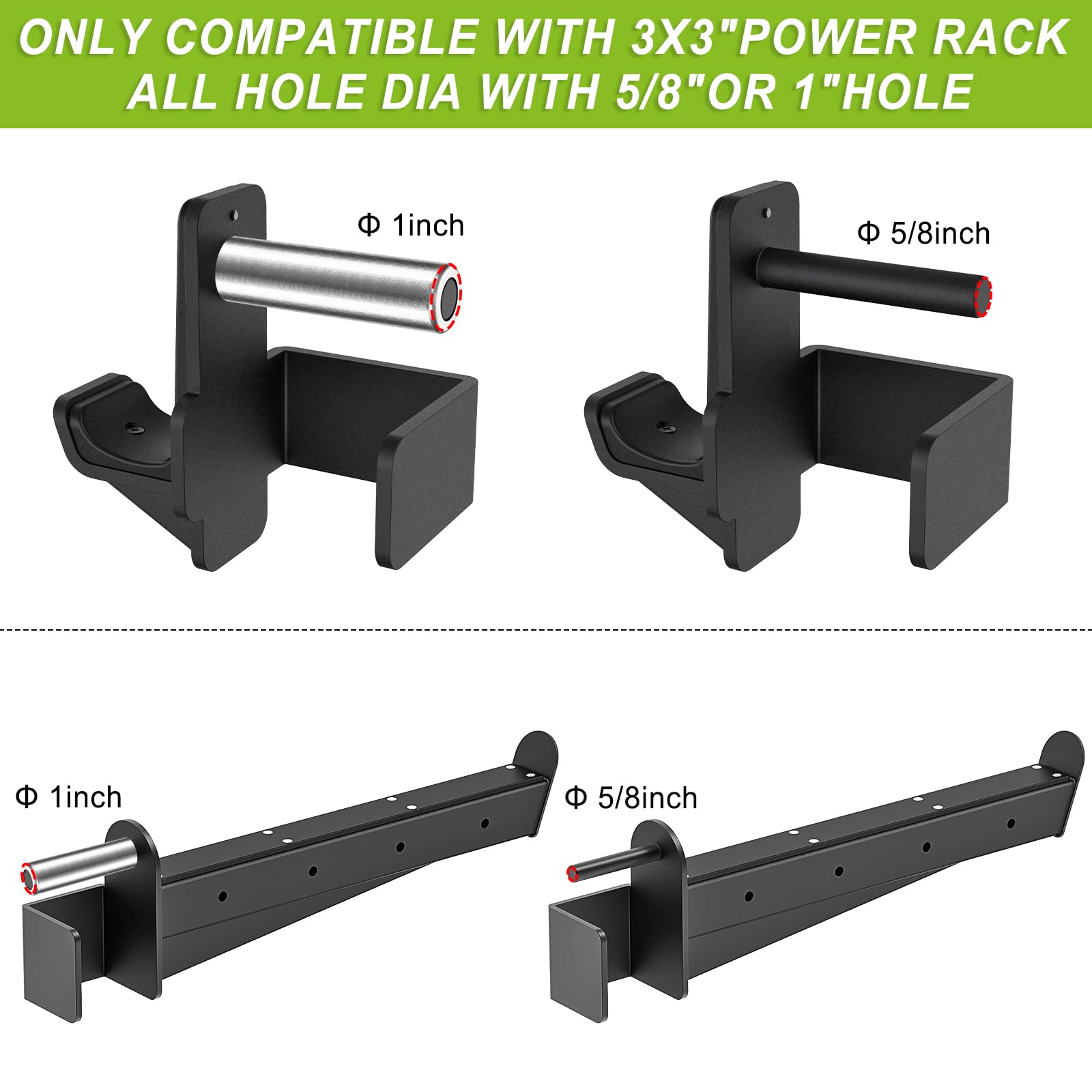 - 【Compatible and Durable】Upgrade your power rack and enhance your strength training experience with the Kipika J-Hooks and Safety Spotter Arms. They both fits 3" x 3" power racks with 5/8" or 1" holes, allowing you to customize your home gym setup and train with confidence. They are made of high-quality steel with a durable powder-coated finish that resists rust and corrosion.