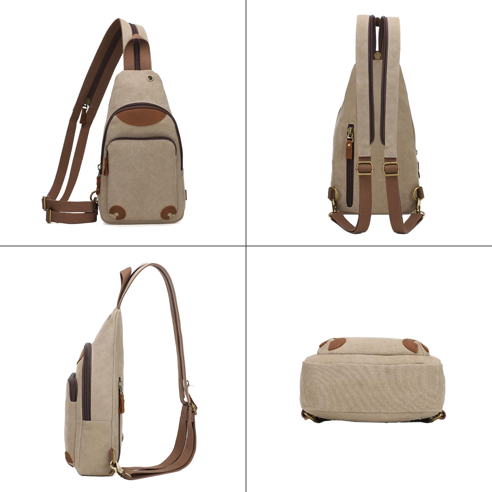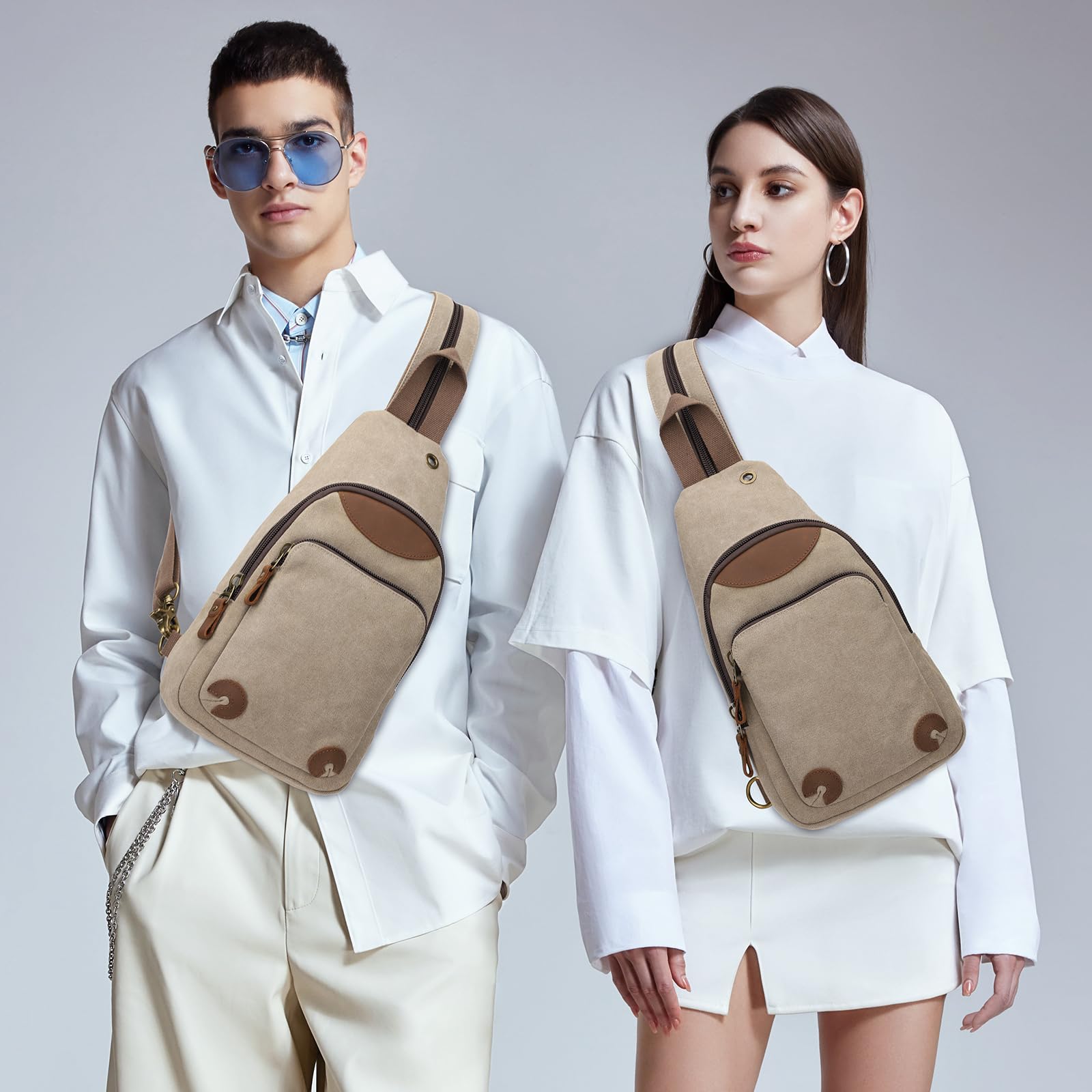 KL928 Canvas Sling Bag Crossbody Backpack Shoulder Casual Rucksack for Men Women, Khaki