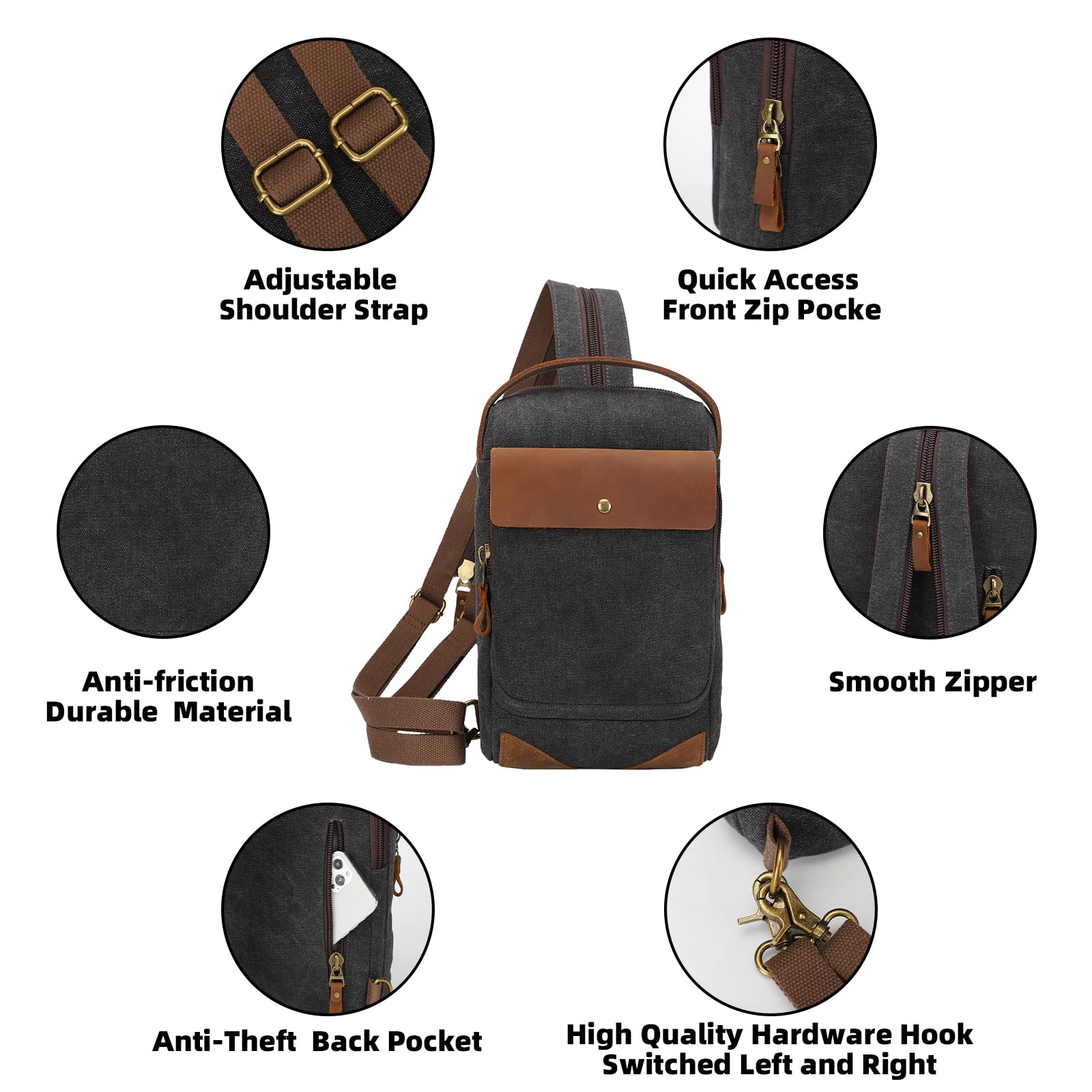 - High-Quality Canvas: This sling bag is made of durable and waterproof canvas material with genuine leather decoration, easy to clean and anti-friction .Durable & Practical &Fashionable.