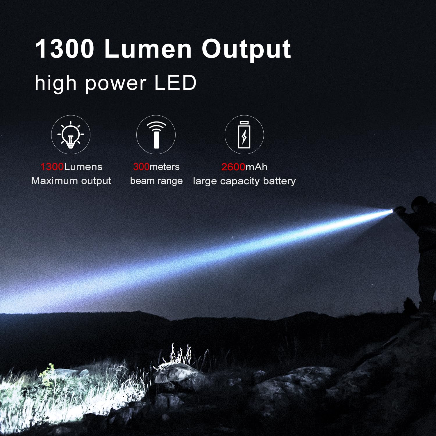 - SUPER BRIGHT LED FLASHLIGHT: EP11 Maximum output of 1300 lumens, a maximum 100 feet beam distance.