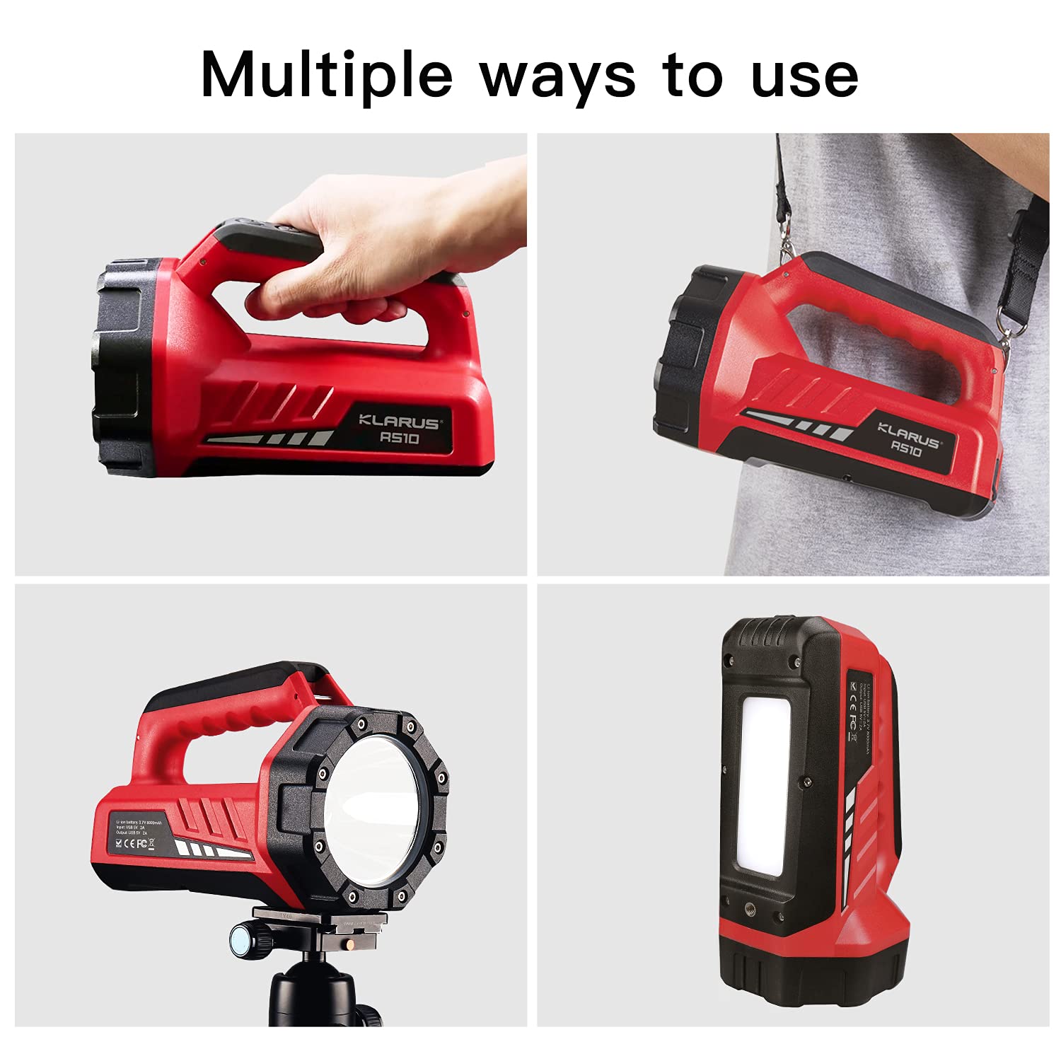 klarus RS10 Big Rechargeable Spotlight: 8000mAh Large Capacity, with Red Flood Mode, Flashlight Lantern Combo, Waterproof Heavy Duty LED Light for Camping, Power Outages and Emergencies