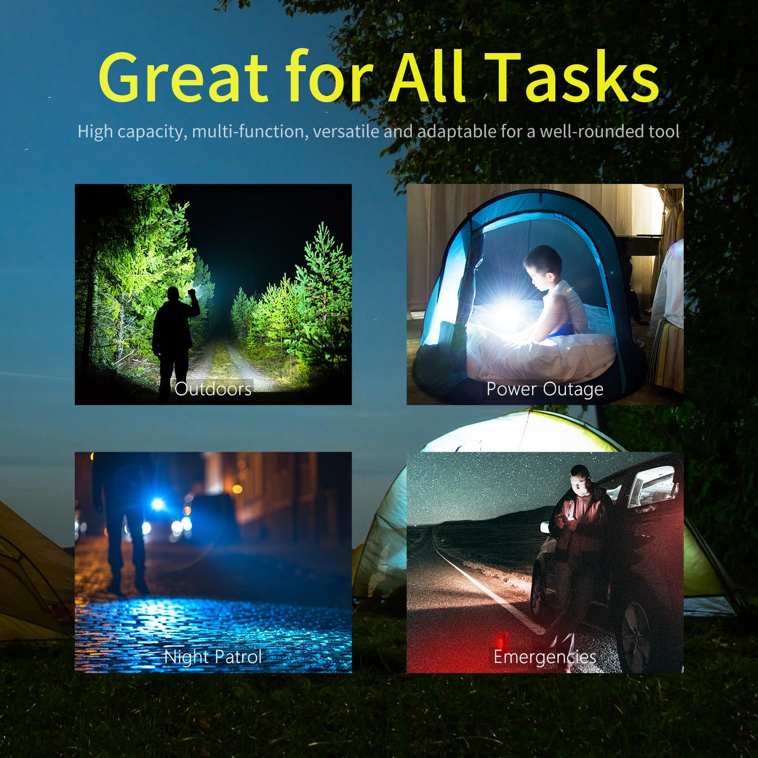 - 7 Lighting Modes: The 2 independent buttons control the spotlight and COB lantern. Front flashlight with 3 brightness modes: High, Medium, Low. Side COB lantern with 4 lighting modes: High white, medium white, steady red and flashing red. Satisfy our various usage needs.