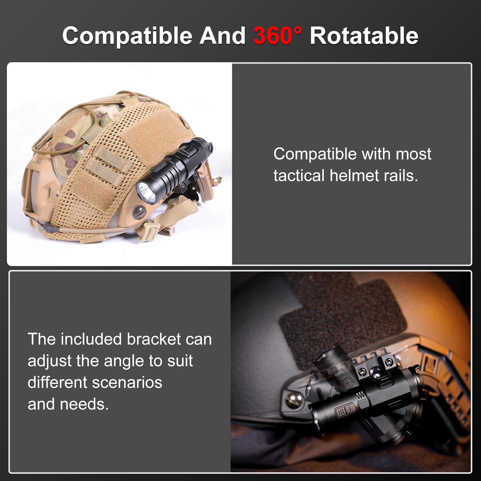 - 【360° Rotation & Featherweight Design】The helmet light rotates a full 360 degrees for adaptability, and weighing 2 ounces, it adds zero burden to helmet—ideal for ARC rail and other ballistic helmet.