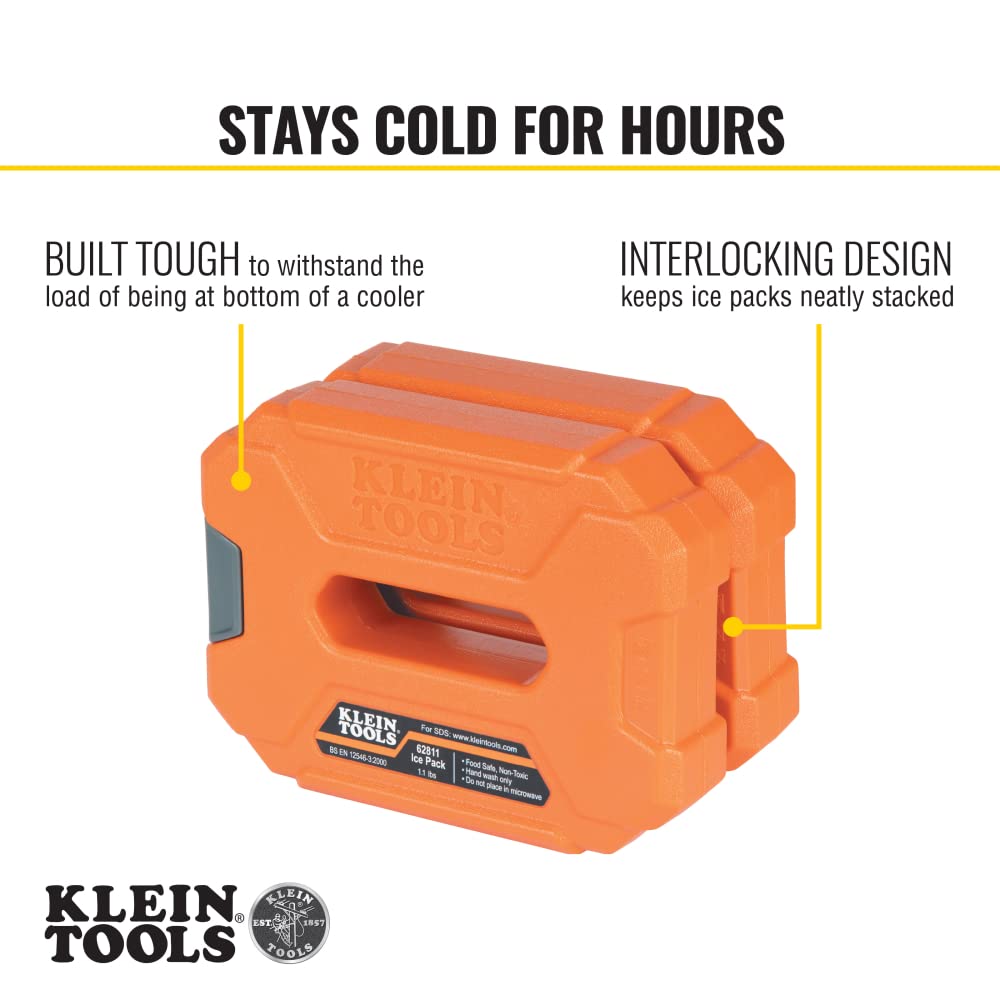 Klein Tools 62811 Reusable Ice Packs for Cooler Bags and Lunch Boxes, Interlocking Design, Heavy Duty for Daily Use, Quick Freeze, 2-Pack