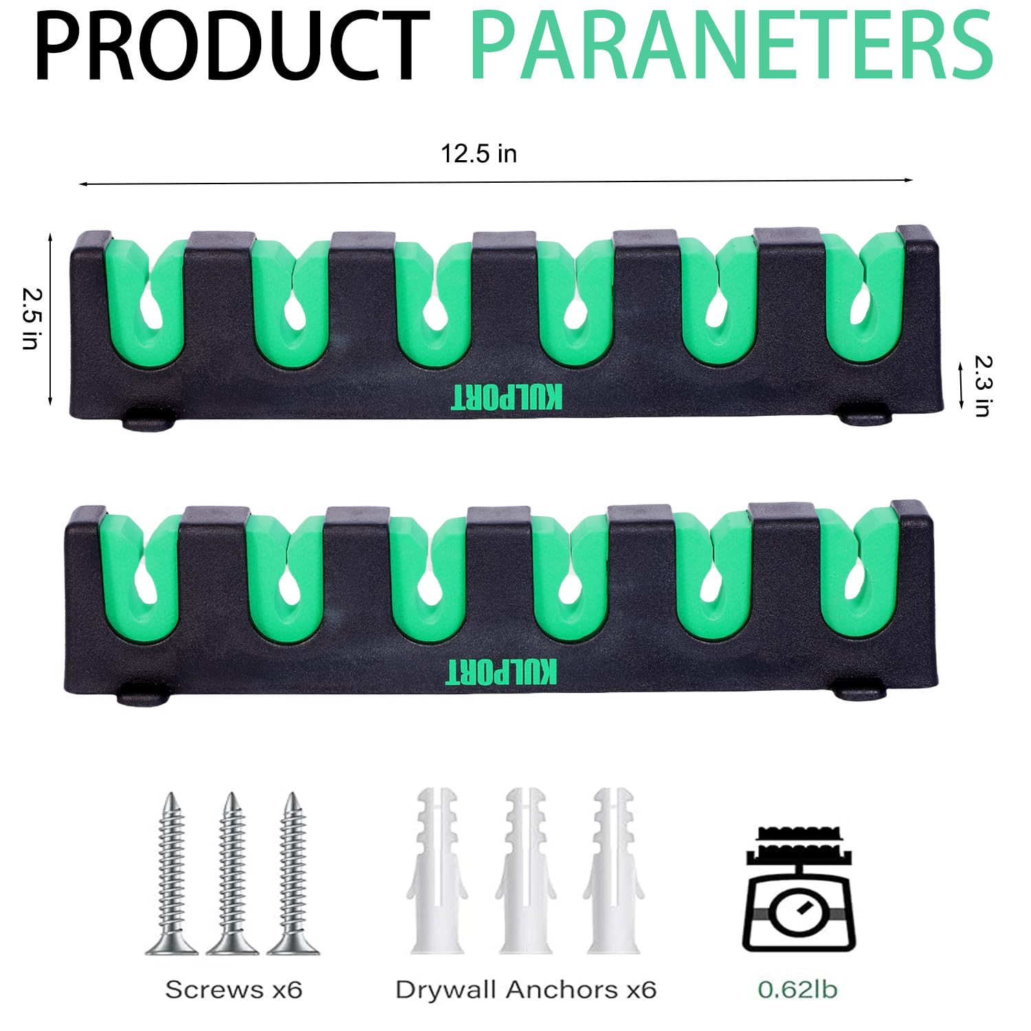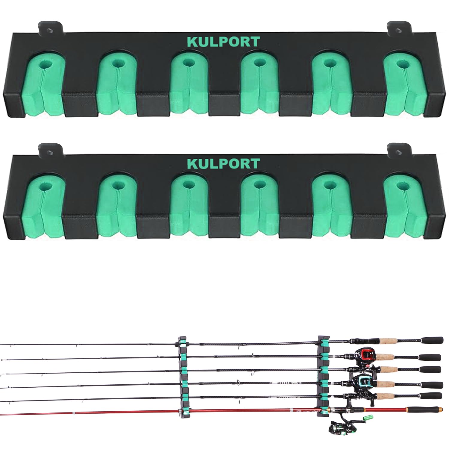 KULPORT Fishing Rod Rack Holders Wall-Mounted Fishing Pole Holder & Rack, Fishing Pole Holders for Garage & Boat 6-Rod Storage Racks(Horizontal Green, 1 Pair)