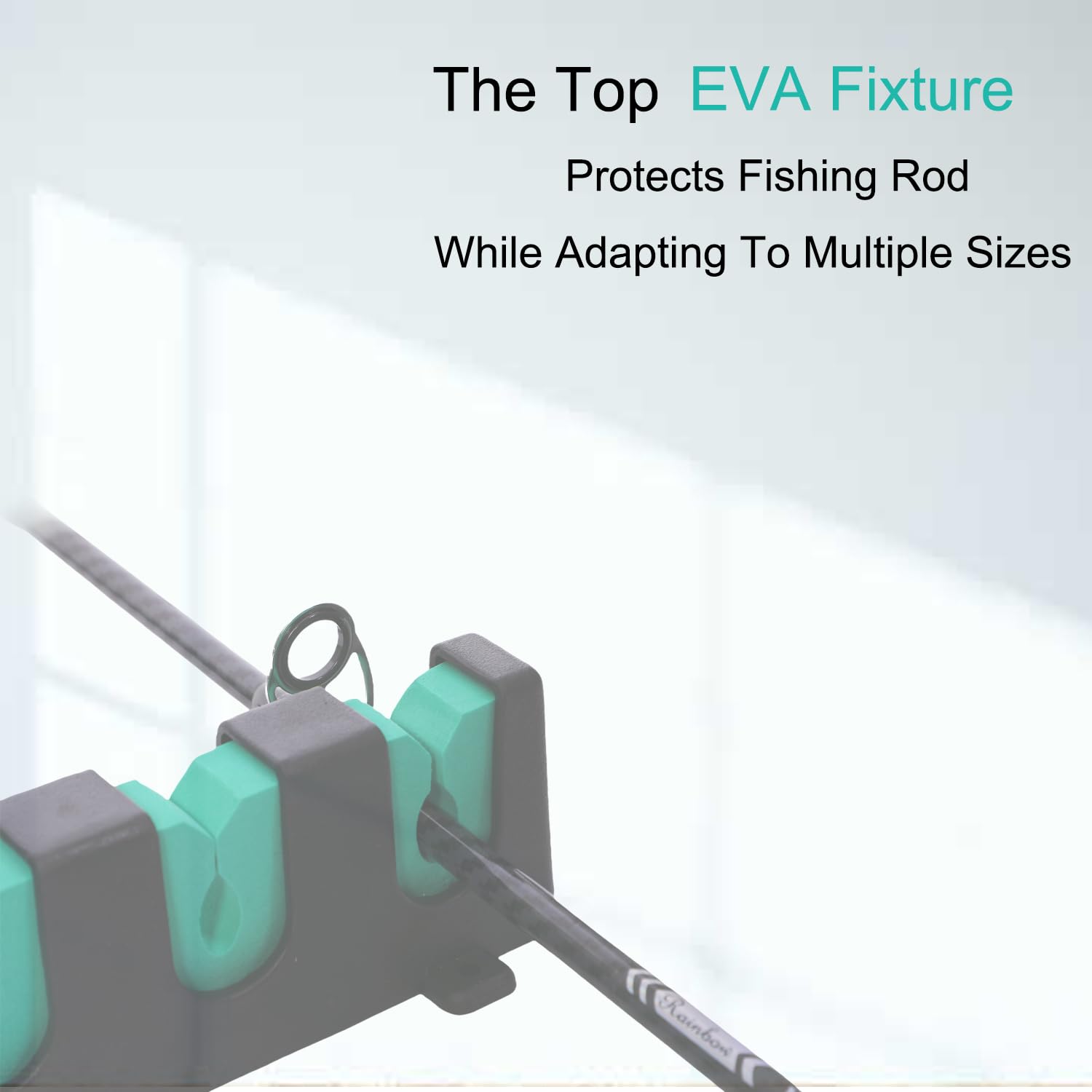 - Protective and Secure:Kulport rod rack grip pads foam is made of EVA designed to hold the poles safely and protect your rods from scratches. The vertical fishing rod holder has a sturdy ABS base, which prevents rods from sliding down.