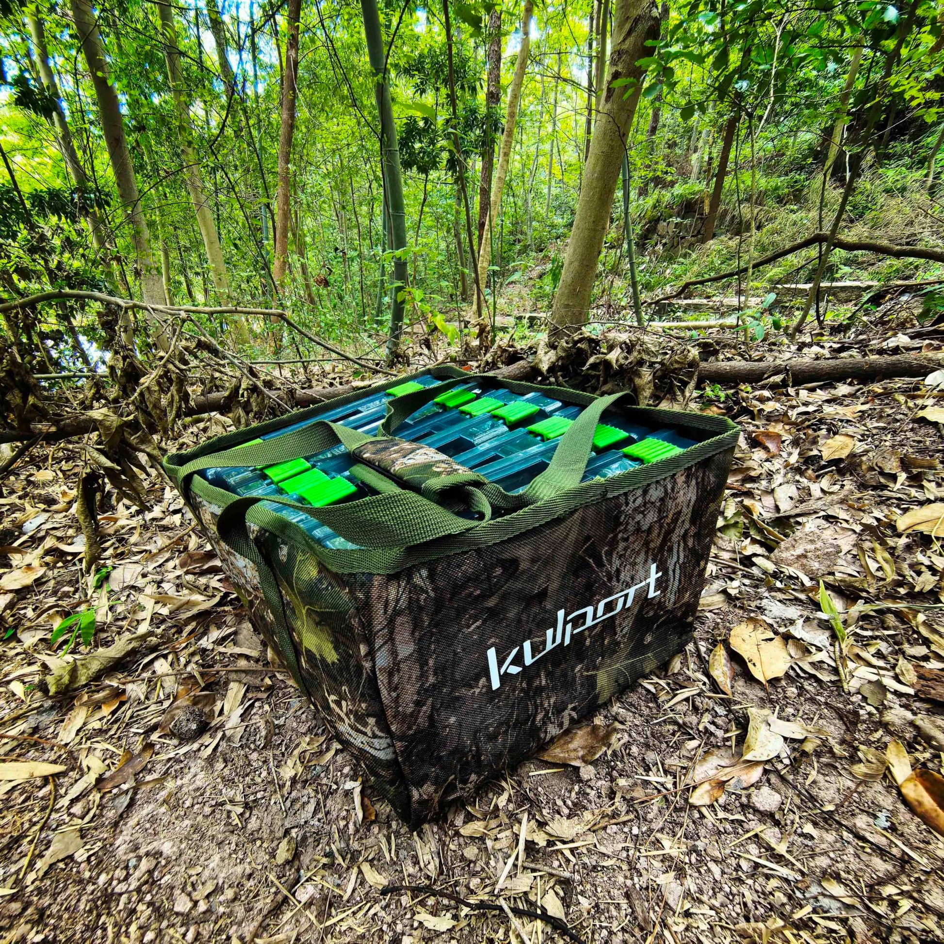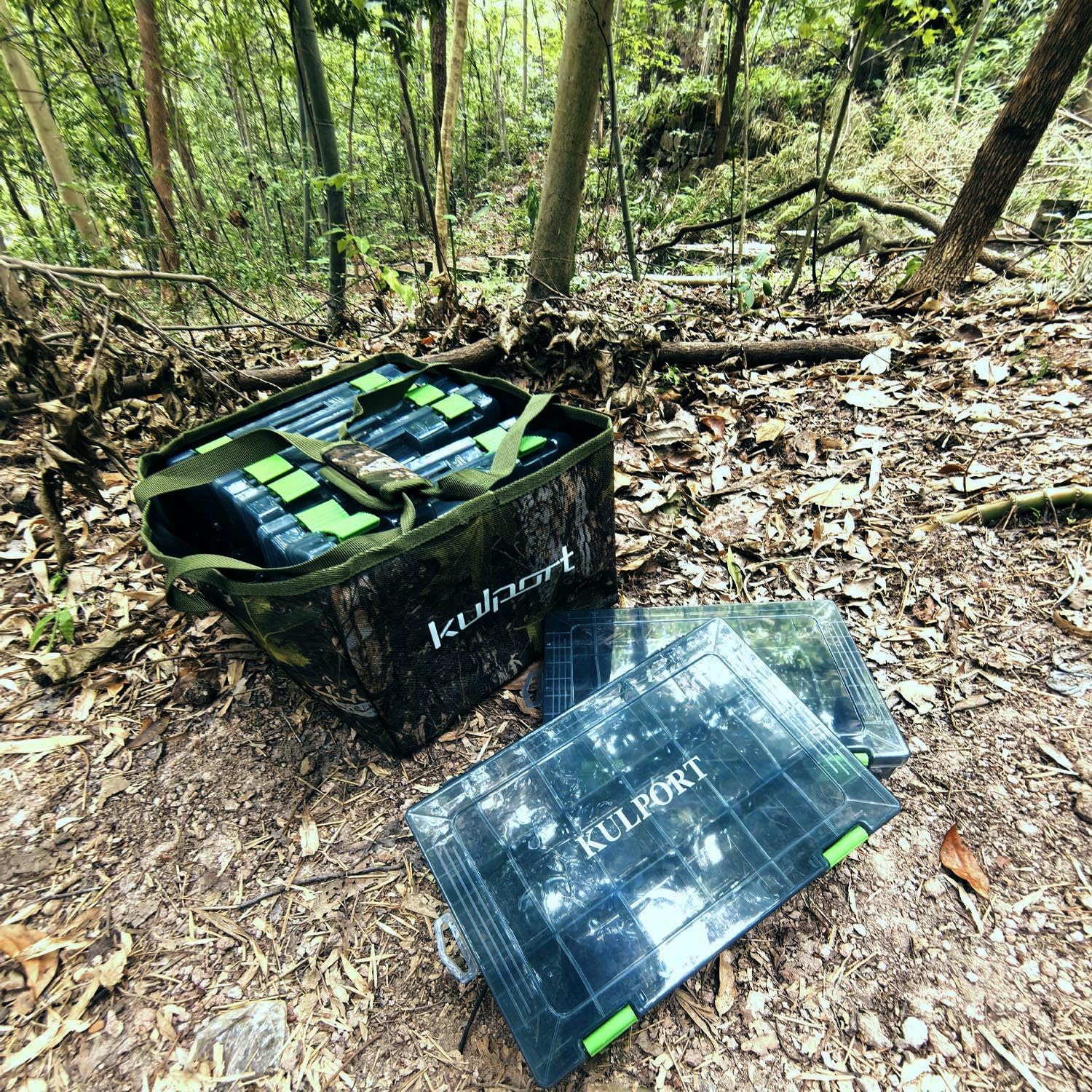 - The Kulport tackle bag is perfect for transporting a variety of fishing gear. The open design allows you to easily see all the boxes and accessories in your bag at a glance, making it easier to find and retrieve. The huge capacity can accommodate all the boxes and accessories you need for outdoor fishing and hunting, with dimensions up to 14.1IN * 11.8IN * 7.8IN