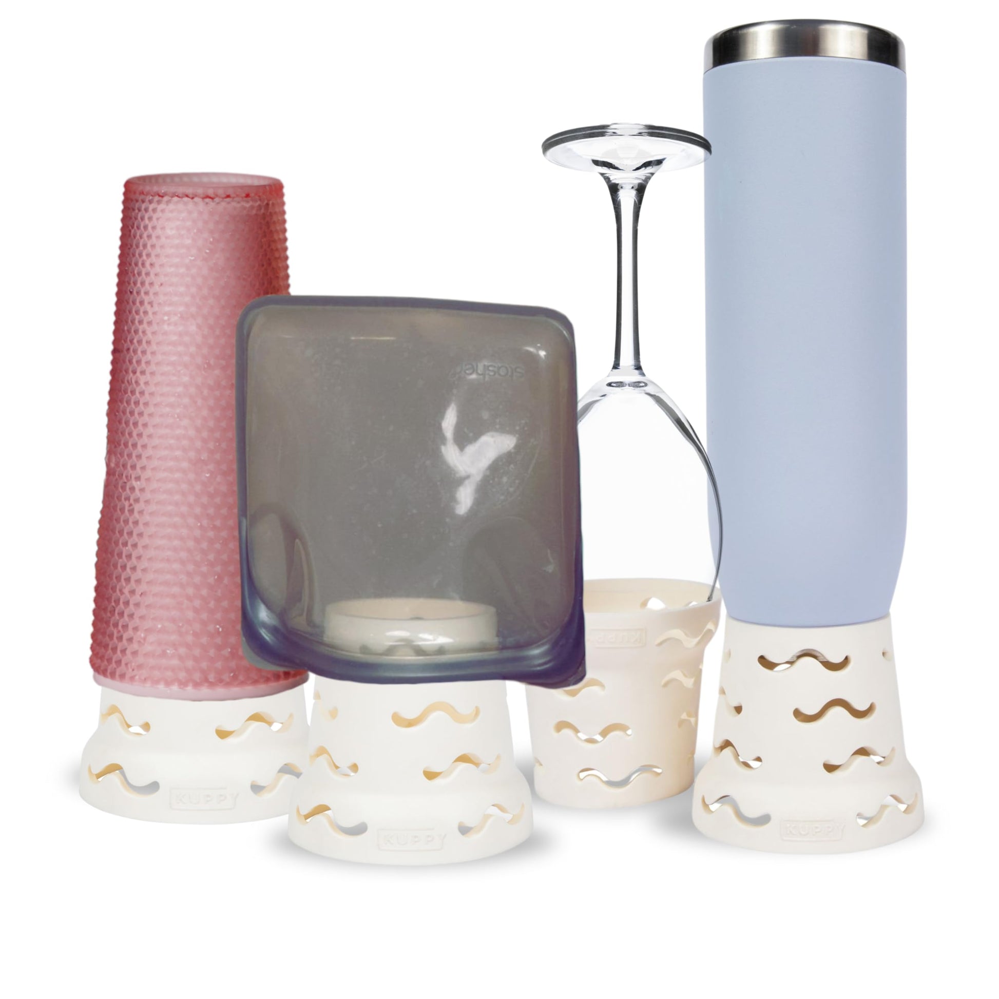 Kuppy Silicone Water Bottle Drying Rack - Fast-Dry Bottle Dryer for 20-64oz Cups - Reusable Food Storage Bag Drying Rack - Compatible with Stanley, Owala, Stasher (White, 4-Pack)