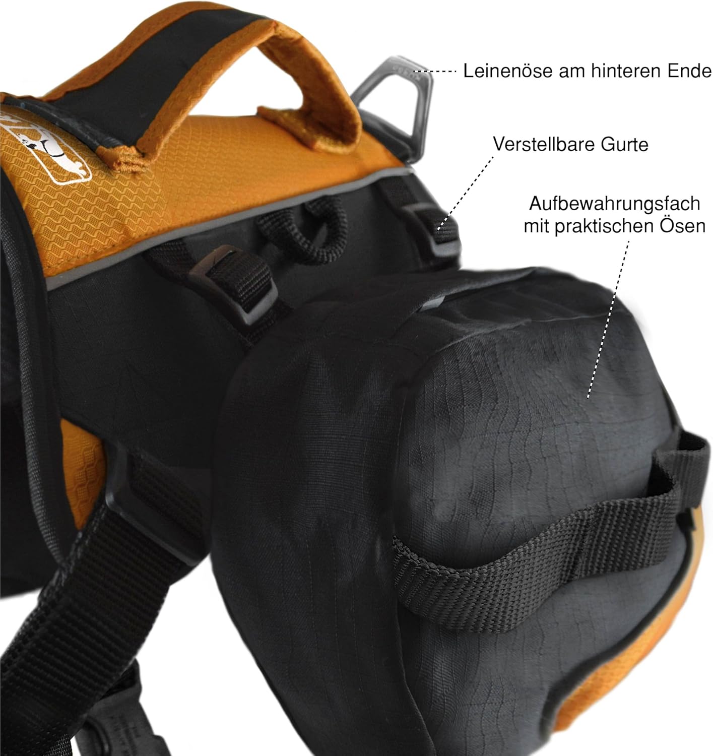 Kurgo Big Baxter Dog Backpack, Dog Saddlebag, Dog Pack, Adjustable Saddlebag for Hiking, Walking, Running, Camping, Black/Orange