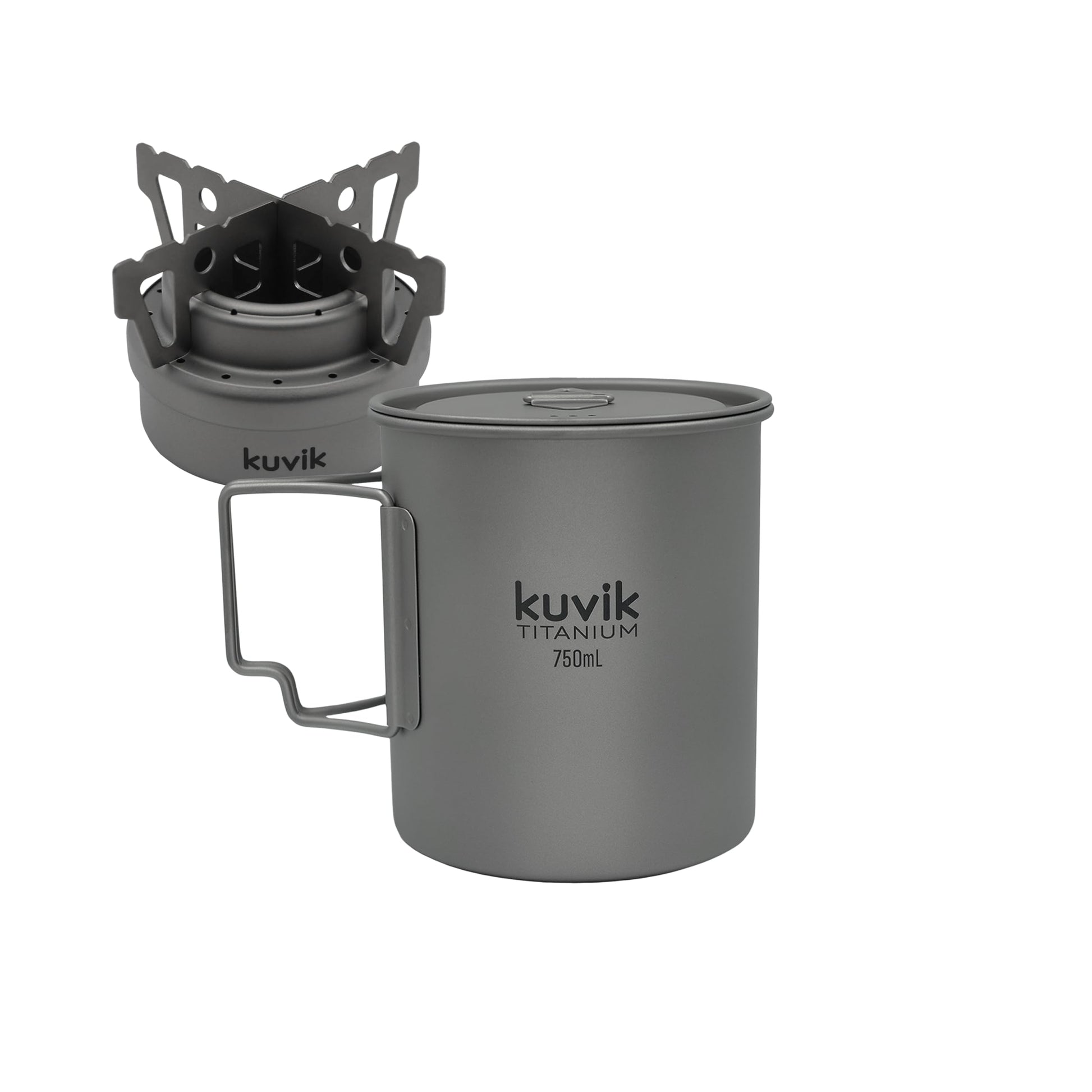 Kuvik Titanium Alcohol Stove & 750ml (25.4 oz) Titanium Pot Bundle