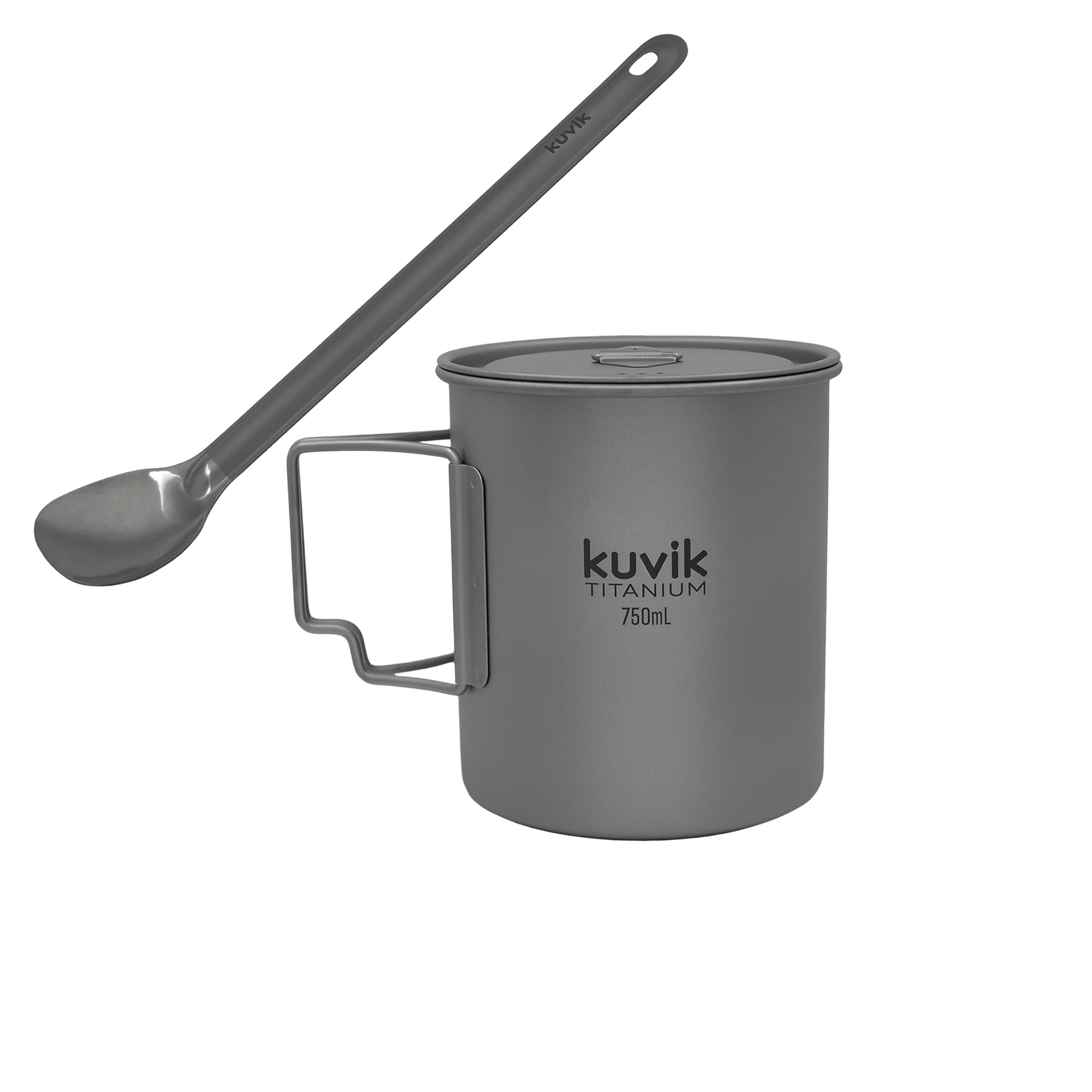 Kuvik Titanium Long Handle Spoon & 750ml (25.4 oz) Titanium Pot Bundle