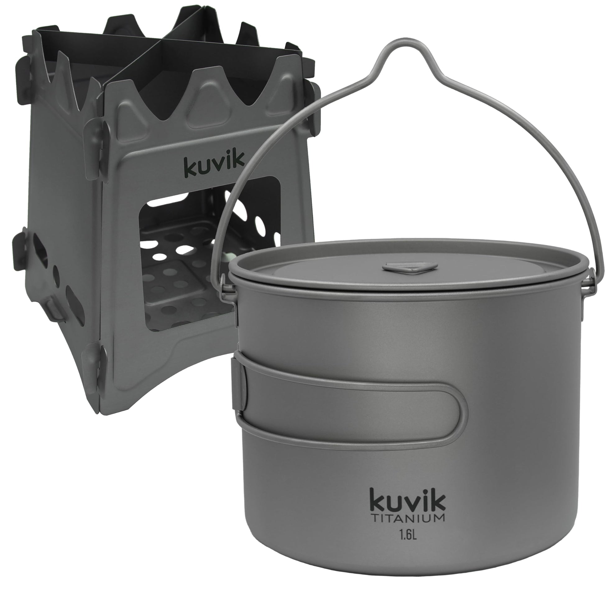 Kuvik Titanium Wood Stove & 1600ml (54 oz) Titanium Pot with Bail Handle Bundle